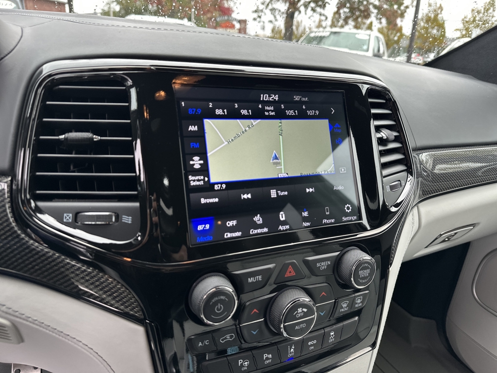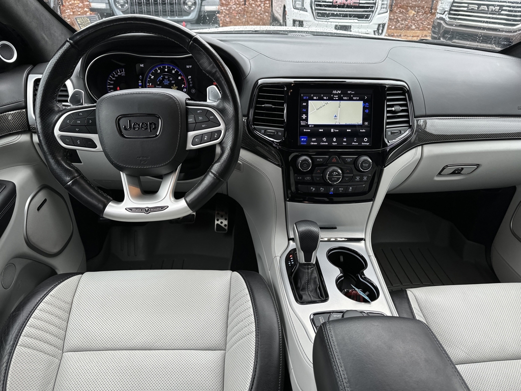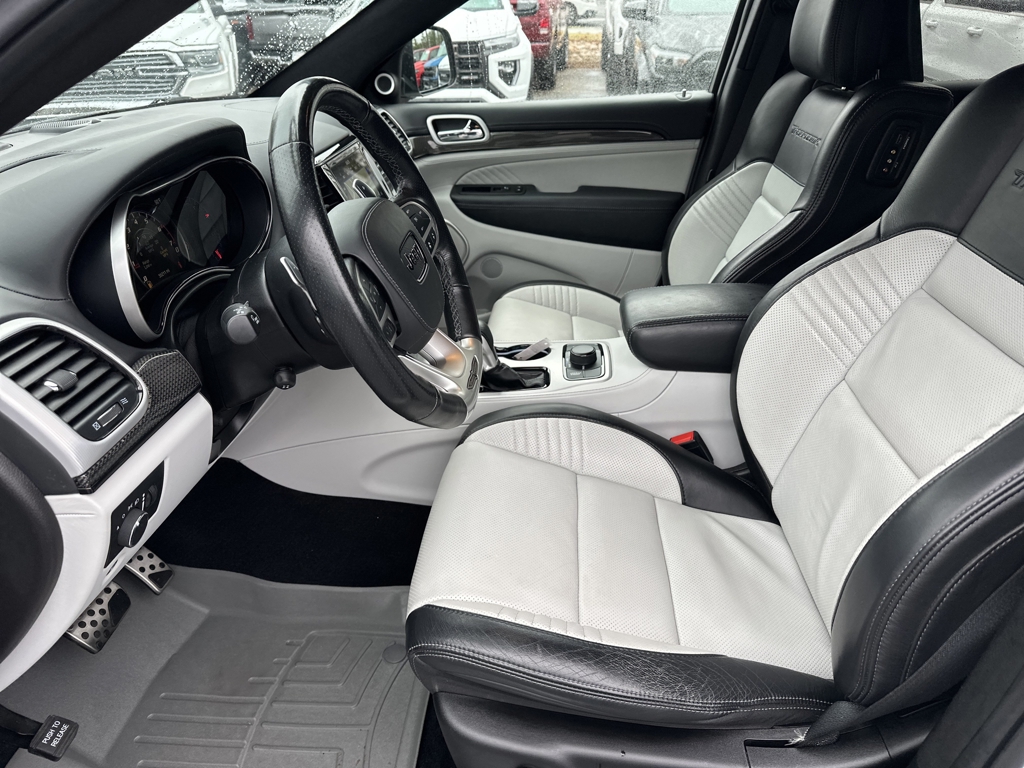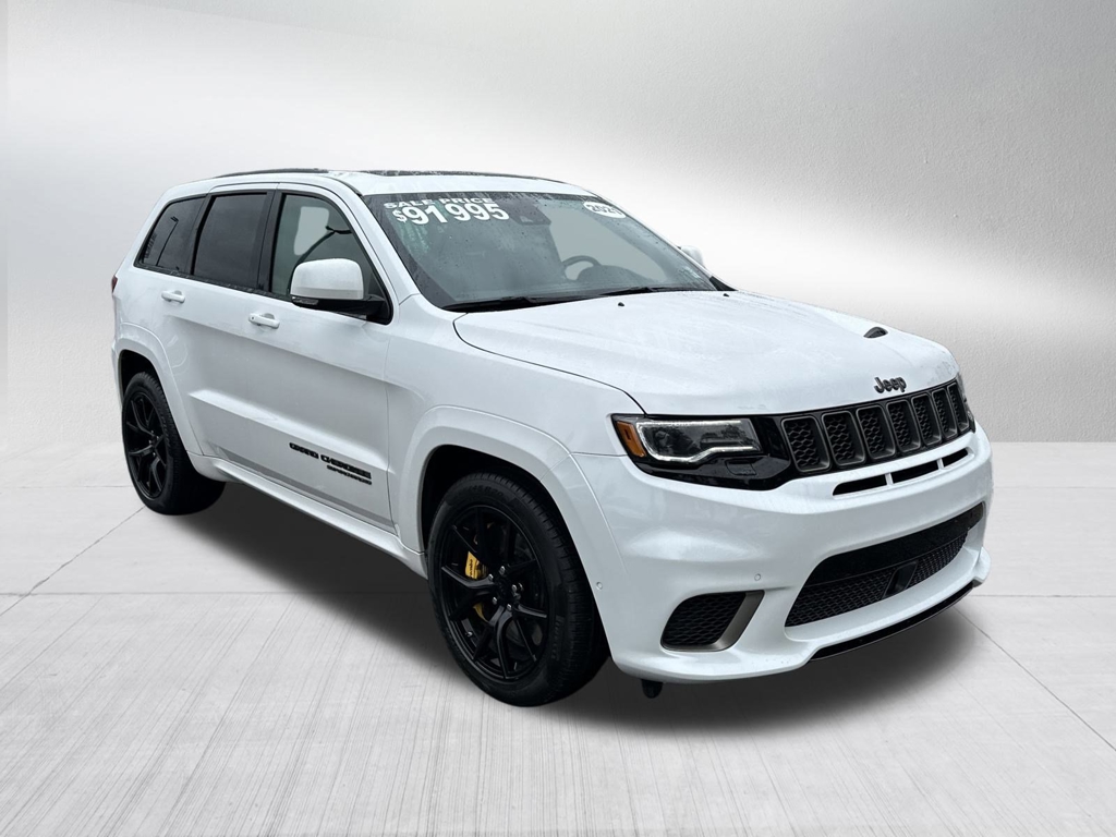 TRACKHAWK 4X4, SIGNATURE LEATHER WRAPPED INTERIOR PACKAGE, PANORAMIC SUNROOF, REAR ENTERTAINMENT DUAL SCREENS, HARMON KARDON HIGH PERFORMANCE AUDIO,GPS / NAVIGATION, FACTORY 20 INCH BLACK WHEELS, REAR BACK UP CAMERA, ADAPTIVE CRUISE CONTROL, BLIND SPOT & CROSS PATH DETECTION, LANESENSE LANE DEPARTURE WARNING PLUS, FORWARD COLLISION WARNING PLUS, LEATHER INTERIOR, 8.4 INCH TOUCHSCREEN, HEATED SEATS, HEATED STEERING WHEEL, VENTILATED FRONT SEATS, SATELLITE RADIO, KEYLESS ENTRY, PUSH BUTTON START, REMOTE START, SIDE AIRBAGS, FRONT & REAR PARK ASSIST SENSORS, UCONNECT VOICE COMMAND WITH BLUETOOTH, STEERING WHEEL MOUNTED AUDIO CONTROLS, DUAL POWER SEAT WITH DRIVER MEMORY, DUAL ZONE FRONT CLIMATE, FACTORY SECURITY SYSTEM, FOG LAMPS, TIRE PRESSURE MONITORING DISPLAY, ALL POWER AND MUCH MORE, CARFAX CERTIFIED, INCLUDES THE REMAINDER OF THE FACTORY WARRANTY, EXTENDED WARRANTY AVAILABLE. Ivory 3-Coat 2021 Jeep Grand Cherokee Trackhawk 6.2L Supercharged HEMI V8 SRT 4WDMUST MENTION OR PRESENT AD AT TIME OF PURCHASE TO RECEIVE THE ADVERTISED PRICE. Welcome to Palmer DCJR! We are proud to be a family-owned business serving the greater Roswell area for 30 years. Here at Palmer, we make customer service our top priority. We are also pleased to be able to offer a buying process that can be completed from start to finish online! We will deliver your new vehicle right to your door. Whether you are in search of your next car or looking for a service center you can trust, Palmer Dodge Chrysler Jeep Ram is the place to go. Give us a call, fill out our online form, or stop by for an incredible automotive experience today! THE ADVERTISED PRICE INCLUDES ALL INCENTIVES INCLUDING IRS EV CREDIT BUT DOES NOT INCLUDE SALES TAX, VEHICLE REGISTRATION FEES, OTHER FEES REQUIRED BY LAW, OR FINANCE CHARGES. SOME OFFERS INCLUDE FINANCING WITH APPROVED LENDERS FOR ADVERTISED PRICE. Palmer Dodge is proudly serving... Atlanta, Buckhead, Duluth, Suwanee, Alpharetta, Cumming, Gainesville, Flowery Branch, Buford, Roswell, Jasper, Canton, Woodstock, Peachtree, Ball Ground, Jefferson, Athens, Augusta, Buford, Conyers, Decatur, Tucker, Milton, Douglasville, Alpharetta, Marietta, Sandy Springs, Dunwoody, Johns Creek, Lawrenceville, Lilburn, Chamblee, Stone Mountain, Vinings, Norcross, Oakwood, Sugar Hill, Athens, Kennesaw, Dawsonville. We also service the following states... Georgia, Florida, Alabama, South Carolina, North Carolina, Mississippi, & more.