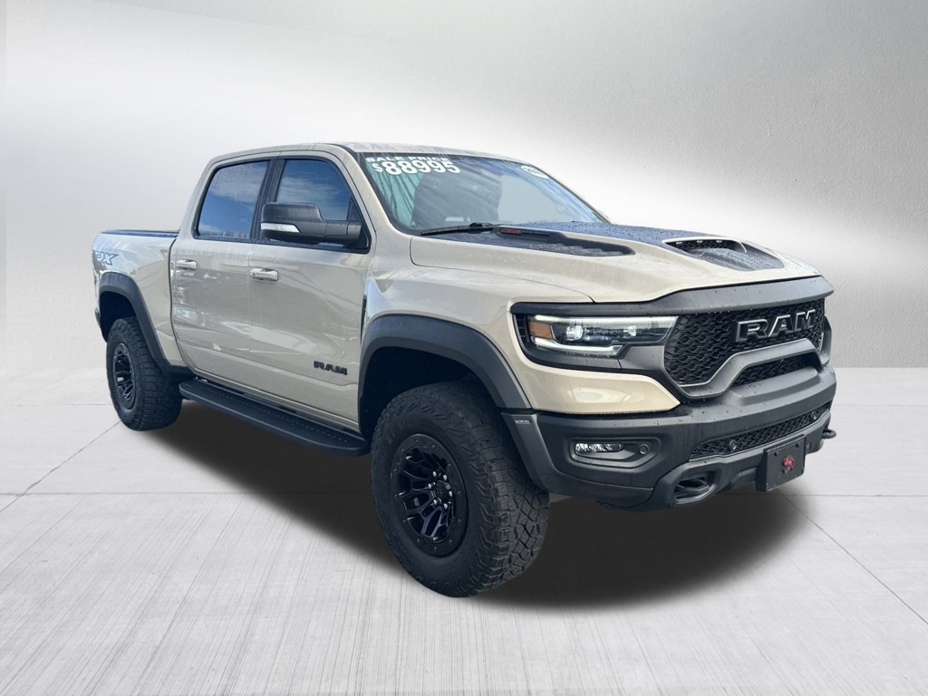 TRX SANDBLAST LIMITED EDITION WITH LEVEL 2 GROUP 6.2L SUPERCHARGED V8 4X4, PANORAMIC SUNROOF, CARBON FIBER INTERIOR GROUP, RUNNING BOARDS, UCONNECT 5 NAVIGATION WITH 12.3 INCH TOUCHSCREEN, HEADS UP DISPLAY, SURROUND VIEW 360 DEGREE CAMERA, ADVANCED SAFETY GROUP, ADAPTIVE CRUISE CONTROL, BLIND SPOT & CROSS PATH DETECTION, LANESENSE LANE DEPARTURE WARNING PLUS, FORWARD COLLISION WARNING PLUS, WIRELESS CHARGING, LED BED LIGHTING, LEATHER INTERIOR, HEATED SEATS, HEATED STEERING WHEEL, VENTILATED FRONT SEATS, POWER ADJUSTABLE PEDALS, HARMON KARDON HIGH PERFORMANCE AUDIO, SATELLITE RADIO, KEYLESS ENTRY, PUSH BUTTON START, REMOTE START, SIDE AIRBAGS, POWER REAR SLIDING WINDOW, FRONT & REAR PARK ASSIST SENSORS, UCONNECT VOICE COMMAND WITH BLUETOOTH, STEERING WHEEL MOUNTED AUDIO CONTROLS, DUAL POWER SEAT WITH DRIVER MEMORY, DUAL ZONE FRONT CLIMATE, FACTORY SECURITY SYSTEM, SPRAY IN BEDLINER, FOG LAMPS, TOWING PACKAGE / HITCH, TIRE PRESSURE MONITORING DISPLAY, ALL POWER AND MUCH MORE, CARFAX CERTIFIED, 1 OWNER, INCLUDES THE REMAINDER OF THE FACTORY WARRANTY, EXTENDED WARRANTY AVAILABLE. Mojave Sand Clearcoat 2022 Ram 1500 TRX 6.2L Supercharged HEMI V8 SRT 4WDPalmer Dodge is proudly serving... Atlanta, Buckhead, Duluth, Suwanee, Alpharetta, Cumming, Gainesville, Flowery Branch, Buford, Roswell, Jasper, Canton, Woodstock, Peachtree, Ball Ground, Jefferson, Athens, Augusta, Buford, Conyers, Decatur, Tucker, Milton, Douglasville, Alpharetta, Marietta, Sandy Springs, Dunwoody, Johns Creek, Lawrenceville, Lilburn, Chamblee, Stone Mountain, Vinings, Norcross, Oakwood, Sugar Hill, Athens, Kennesaw, Dawsonville. We also service the following states... Georgia, Florida, Alabama, South Carolina, North Carolina, Mississippi, & more.