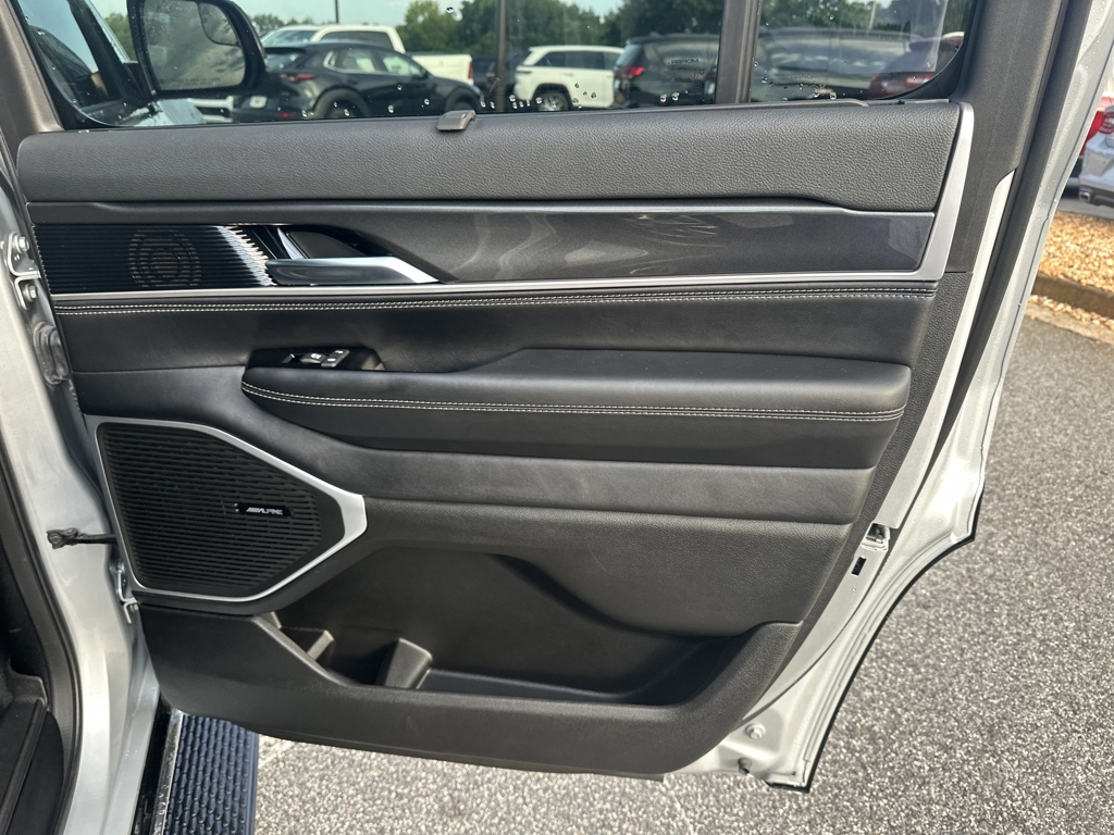 WAGONEER 4X4, CONVENIENCE GROUP, UCONNECT 5 NAVIGATION WITH 10.1 INCH DISPLAY, WIRELESS CHARGING PAD, SURROUND VIEW 360 DEGREE CAMERA, ADAPTIVE CRUISE CONTROL, BLIND SPOT & CROSS PATH DETECTION, LANESENSE LANE DEPARTURE WARNING PLUS, PARALLEL AND PERPENDICULAR PARK ASSIST, FORWARD COLLISION WARNING PLUS, LEATHER INTERIOR, MIDDLE ROW CAPTAIN CHAIRS, 3RD ROW SEATING, HEATED SEATS, HEATED STEERING WHEEL, VENTILATED FRONT SEATS, ALPINE PREMIUM AUDIO GROUP, SATELLITE RADIO, KEYLESS ENTRY, PUSH BUTTON START, REMOTE START, SIDE AIRBAGS, FRONT & REAR PARK ASSIST SENSORS, UCONNECT VOICE COMMAND WITH BLUETOOTH, STEERING WHEEL MOUNTED AUDIO CONTROLS, DUAL POWER SEAT WITH DRIVER MEMORY, DUAL ZONE FRONT CLIMATE, REAR ZONE CLIMATE, FACTORY SECURITY SYSTEM, ALLOYS, FOG LAMPS, TOWING PACKAGE / HITCH, TIRE PRESSURE MONITORING DISPLAY, ALL POWER AND MUCH MORE, CARFAX CERTIFIED, 1 OWNER, INCLUDES THE REMAINDER OF THE FACTORY WARRANTY, EXTENDED WARRANTY AVAILABLE. Silver Zynith 2023 Jeep Wagoneer 5.7L V8 4WDFCA US LLC Certified Pre-Owned Details:* Powertrain Limited Warranty: 84 Month/100,000 Mile (whichever comes first) from original in-service date* 125 Point Inspection* Roadside Assistance* Transferable Warranty* Warranty Deductible: $100* Limited Warranty: 3 Month/3,000 Mile (whichever comes first) after new car warranty expires or from certified purchase date* Vehicle History* Vehicles Up to 75,000 Miles and/or 5 Model Years. 24-Hour Towing & Roadside Assistance, Car Rental Allowance, CARFAX® Vehicle History ReportTM and an Introductory 3-month Subscription to SiriusXM® Satellite Radio & Certified Warranty UpgradesPalmer Dodge is proudly serving... Atlanta, Buckhead, Duluth, Suwanee, Alpharetta, Cumming, Gainesville, Flowery Branch, Buford, Roswell, Jasper, Canton, Woodstock, Peachtree, Ball Ground, Jefferson, Athens, Augusta, Buford, Conyers, Decatur, Tucker, Milton, Douglasville, Alpharetta, Marietta, Sandy Springs, Dunwoody, Johns Creek, Lawrenceville, Lilburn, Chamblee, Stone Mountain, Vinings, Norcross, Oakwood, Sugar Hill, Athens, Kennesaw, Dawsonville. We also service the following states... Georgia, Florida, Alabama, South Carolina, North Carolina, Mississippi, & more.