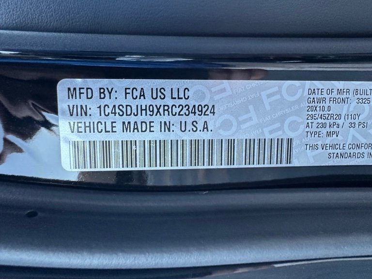 HELLCAT PREMIUM PACKAGE 6.2L V8 SUPERCHARGED AWD, BLACK PACKAGE, UCONNECT 5 NAVIGATION WITH 10.1 INCH DISPLAY, MOONROOF / SUNROOF, SURROUND VIEW 360 DEGREE CAMERA, AUTOMATIC TRANSMISSION, ADAPTIVE CRUISE CONTROL, BLIND SPOT & CROSS PATH DETECTION, LANESENSE LANE DEPARTURE WARNING PLUS, FORWARD COLLISION WARNING PLUS, LEATHER INTERIOR, MIDDLE ROW CAPTAIN CHAIRS, HEATED SEATS, HEATED STEERING WHEEL, VENTILATED FRONT SEATS, HARMON KARDON HIGH PERFORMANCE AUDIO, SATELLITE RADIO, KEYLESS ENTRY, PUSH BUTTON START, REMOTE START, SIDE AIRBAGS, FRONT & REAR PARK ASSIST SENSORS, UCONNECT VOICE COMMAND WITH BLUETOOTH, STEERING WHEEL MOUNTED AUDIO CONTROLS, DUAL POWER SEAT WITH DRIVER MEMORY, DUAL ZONE FRONT CLIMATE, FACTORY SECURITY SYSTEM, POWER TELESCOPING STEERING WHEEL, FOG LAMPS, TIRE PRESSURE MONITORING DISPLAY, ALL POWER AND MUCH MORE, CARFAX CERTIFIED, 1 OWNER, INCLUDES THE REMAINDER OF THE FACTORY WARRANTY, EXTENDED WARRANTY AVAILABLE. DB Black Crystal Clearcoat 2024 Dodge Durango SRT Hellcat 6.2L Supercharged HEMI V8 SRT AWDMUST MENTION OR PRESENT AD AT TIME OF PURCHASE TO RECEIVE THE ADVERTISED PRICE. Welcome to Palmer DCJR! We are proud to be a family-owned business serving the greater Roswell area for 30 years. Here at Palmer, we make customer service our top priority. We are also pleased to be able to offer a buying process that can be completed from start to finish online! We will deliver your new vehicle right to your door. Whether you are in search of your next car or looking for a service center you can trust, Palmer Dodge Chrysler Jeep Ram is the place to go. Give us a call, fill out our online form, or stop by for an incredible automotive experience today! THE ADVERTISED PRICE INCLUDES ALL INCENTIVES INCLUDING IRS EV CREDIT BUT DOES NOT INCLUDE SALES TAX, VEHICLE REGISTRATION FEES, OTHER FEES REQUIRED BY LAW, OR FINANCE CHARGES. SOME OFFERS INCLUDE FINANCING WITH APPROVED LENDERS FOR ADVERTISED PRICE. Palmer Dodge is proudly serving... Atlanta, Buckhead, Duluth, Suwanee, Alpharetta, Cumming, Gainesville, Flowery Branch, Buford, Roswell, Jasper, Canton, Woodstock, Peachtree, Ball Ground, Jefferson, Athens, Augusta, Buford, Conyers, Decatur, Tucker, Milton, Douglasville, Alpharetta, Marietta, Sandy Springs, Dunwoody, Johns Creek, Lawrenceville, Lilburn, Chamblee, Stone Mountain, Vinings, Norcross, Oakwood, Sugar Hill, Athens, Kennesaw, Dawsonville. We also service the following states... Georgia, Florida, Alabama, South Carolina, North Carolina, Mississippi, & more.