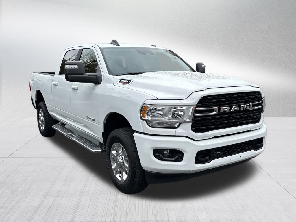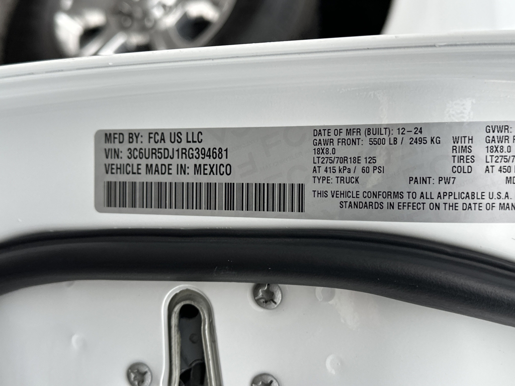 2500 BIG HORN SPORT APPEARANCE GROUP 6.4L V8 4X4, CERTIFIED PRE OWNED INCLUDES WARRANTY, SAFETY GROUP, UCONNECT 5 NAVIGATION WITH 12.3 INCH TOUCHSCREEN, LEVEL 1 GROUP, BED UTILITY GROUP, ADAPTIVE CRUISE CONTROL, BLIND SPOT & CROSS PATH DETECTION, LANESENSE LANE DEPARTURE WARNING PLUS, FORWARD COLLISION WARNING PLUS, FACTORY TRAILER BRAKE, SPRAY IN BEDLINER, LED BED LIGHTING, DEPLOYABLE BED STEP, CHROME LENGTH SIDE STEPS, 9 ALPINE SPEAKERS WITH SUBWOOFER, PROTECTION GROUP, SATELLITE RADIO, KEYLESS ENTRY, PUSH BUTTON START, FRONT & REAR PARK ASSIST SENSORS, UCONNECT VOICE COMMAND WITH BLUETOOTH, STEERING WHEEL MOUNTED AUDIO CONTROLS, POWER SEAT, DUAL ZONE FRONT CLIMATE, FACTORY SECURITY SYSTEM, ALLOYS, FOG LAMPS, TOWING PACKAGE / HITCH, TIRE PRESSURE MONITORING DISPLAY, ALL POWER AND MUCH MORE, CARFAX CERTIFIED, 1 OWNER, INCLUDES THE REMAINDER OF THE FACTORY WARRANTY, EXTENDED WARRANTY AVAILABLE. Diamond Black Crystal Pearlcoat 2024 Ram 2500 Big Horn 6.4L V8 4WD