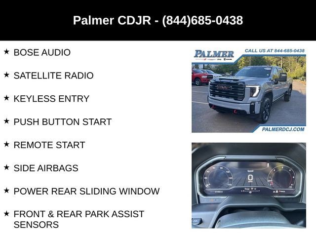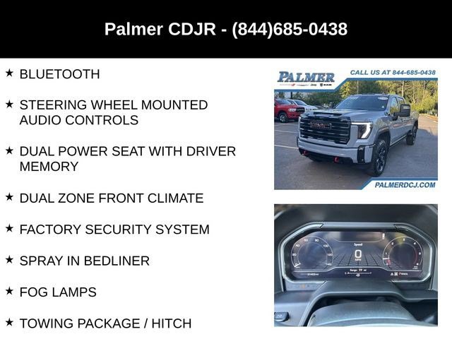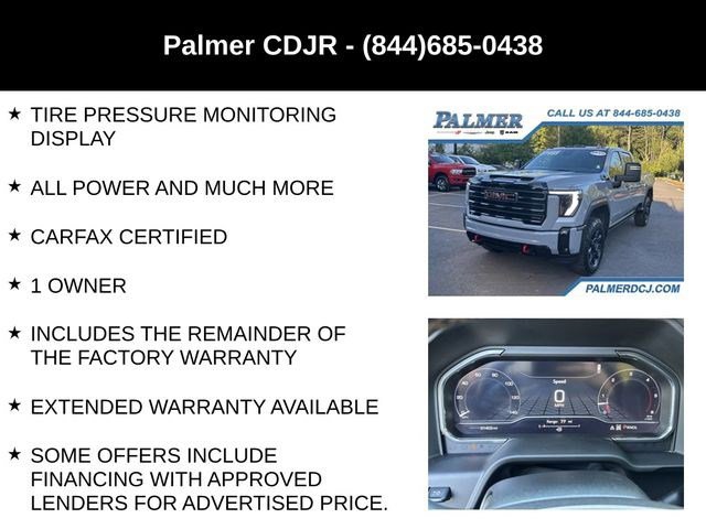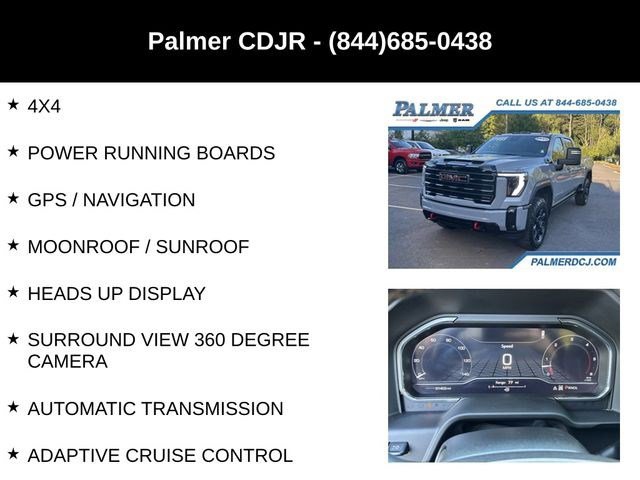 3500 AT4 DURAMAX TURBO DIESEL 4X4, AT4 PREMIUM PLUS PACKAGE, POWER RUNNING BOARDS, TECHNOLOGY PACKAGE, GOOSENECK PREP PACKAGE, GPS / NAVIGATION, MOONROOF / SUNROOF, COLORED HEADS UP DISPLAY, SURROUND VIEW 360 DEGREE CAMERA, AUTOMATIC TRANSMISSION, ADAPTIVE CRUISE CONTROL, BLIND SPOT & CROSS PATH DETECTION, LANESENSE LANE DEPARTURE WARNING PLUS, FORWARD COLLISION WARNING PLUS, LEATHER INTERIOR, TOUCHSCREEN DISPLAY, HEATED SEATS, HEATED STEERING WHEEL, VENTILATED FRONT SEATS, BOSE AUDIO, SATELLITE RADIO, KEYLESS ENTRY, PUSH BUTTON START, REMOTE START, SIDE AIRBAGS, POWER REAR SLIDING WINDOW, FRONT & REAR PARK ASSIST SENSORS, BLUETOOTH, STEERING WHEEL MOUNTED AUDIO CONTROLS, DUAL POWER SEAT WITH DRIVER MEMORY, DUAL ZONE FRONT CLIMATE, FACTORY SECURITY SYSTEM, SPRAY IN BEDLINER, FOG LAMPS, TOWING PACKAGE / HITCH, TIRE PRESSURE MONITORING DISPLAY, ALL POWER AND MUCH MORE, CARFAX CERTIFIED, 1 OWNER, INCLUDES THE REMAINDER OF THE FACTORY WARRANTY, EXTENDED WARRANTY AVAILABLE, SOME OFFERS INCLUDE FINANCING WITH APPROVED LENDERS FOR ADVERTISED PRICE.. Thunderstorm Gray 2025 GMC Sierra 3500HD AT4 Duramax 6.6L V8 Turbodiesel 4WDMUST MENTION OR PRESENT AD AT TIME OF PURCHASE TO RECEIVE THE ADVERTISED PRICE. Welcome to Palmer DCJR! We are proud to be a family-owned business serving the greater Roswell area for 30 years. Here at Palmer, we make customer service our top priority. We are also pleased to be able to offer a buying process that can be completed from start to finish online! We will deliver your new vehicle right to your door. Whether you are in search of your next car or looking for a service center you can trust, Palmer Dodge Chrysler Jeep Ram is the place to go. Give us a call, fill out our online form, or stop by for an incredible automotive experience today! THE ADVERTISED PRICE INCLUDES ALL INCENTIVES INCLUDING IRS EV CREDIT BUT DOES NOT INCLUDE SALES TAX, VEHICLE REGISTRATION FEES, OTHER FEES REQUIRED BY LAW, OR FINANCE CHARGES. SOME OFFERS INCLUDE FINANCING WITH APPROVED LENDERS FOR ADVERTISED PRICE. Palmer Dodge is proudly serving... Atlanta, Buckhead, Duluth, Suwanee, Alpharetta, Cumming, Gainesville, Flowery Branch, Buford, Roswell, Jasper, Canton, Woodstock, Peachtree, Ball Ground, Jefferson, Athens, Augusta, Buford, Conyers, Decatur, Tucker, Milton, Douglasville, Alpharetta, Marietta, Sandy Springs, Dunwoody, Johns Creek, Lawrenceville, Lilburn, Chamblee, Stone Mountain, Vinings, Norcross, Oakwood, Sugar Hill, Athens, Kennesaw, Dawsonville. We also service the following states... Georgia, Florida, Alabama, South Carolina, North Carolina, Mississippi, & more.