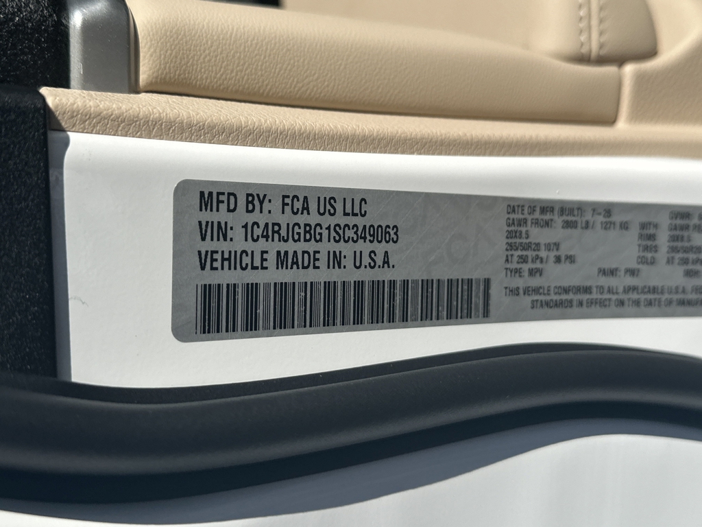 • VIN: 1C4RJGBG1SC349063