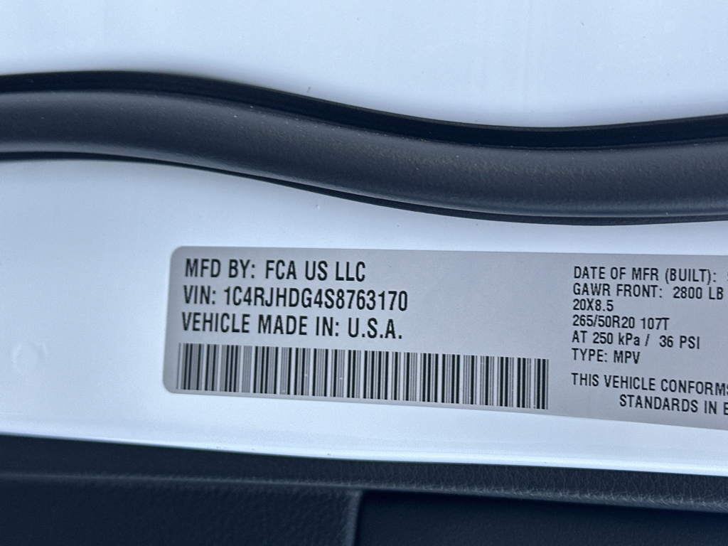 • VIN: 1C4RJHDG4S8763170