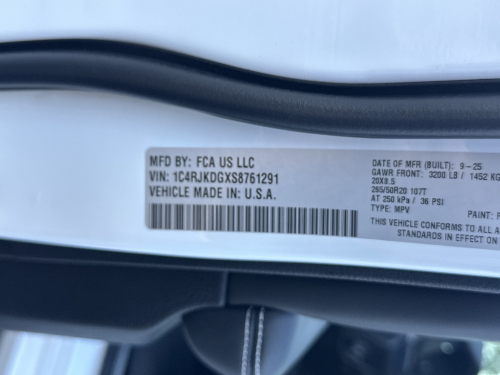• VIN: 1C4RJKDGXS8761291