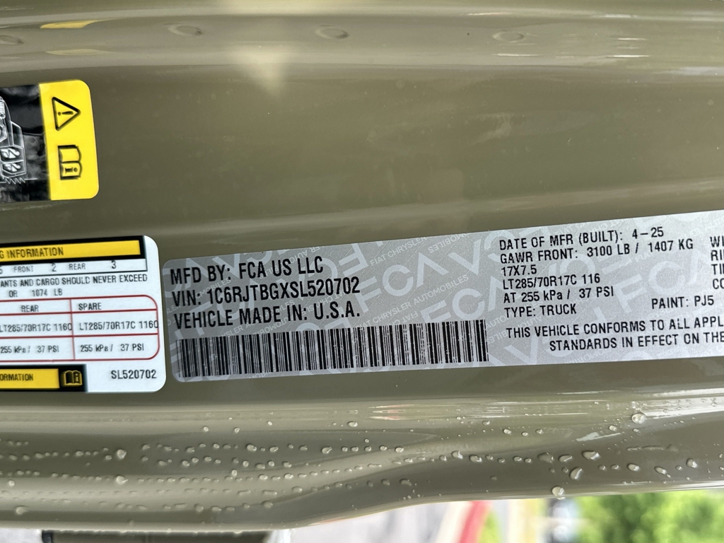 41 2025 Jeep Gladiator Rubicon 3.6L V6 24V VVT 4WDMUST MENTION OR PRESENT AD AT TIME OF PURCHASE TO RECEIVE THE ADVERTISED PRICE. Welcome to Palmer DCJR! We are proud to be a family-owned business serving the greater Roswell area for 30 years. Here at Palmer, we make customer service our top priority. We are also pleased to be able to offer a buying process that can be completed from start to finish online! We will deliver your new vehicle right to your door. Whether you are in search of your next car or looking for a service center you can trust, Palmer Dodge Chrysler Jeep Ram is the place to go. Give us a call, fill out our online form, or stop by for an incredible automotive experience today! THE ADVERTISED PRICE INCLUDES ALL INCENTIVES INCLUDING IRS EV CREDIT BUT DOES NOT INCLUDE SALES TAX, VEHICLE REGISTRATION FEES, OTHER FEES REQUIRED BY LAW, OR FINANCE CHARGES. SOME OFFERS INCLUDE FINANCING WITH APPROVED LENDERS FOR ADVERTISED PRICE.BEDLINER, SPRAY-IN BED LINER, BACK-UP CAMERA, 4X4, LEATHER, HEATED FRONT SEATS, HEATED STEERING WHEEL, NAVIGATION, BLUETOOTH®, REMOTE START, MP3 Player, KEYLESS ENTRY, SAT RADIO, LED HEADLIGHTS, ALLOY WHEELS. MSRP: $61795 SALE Price: $48795!