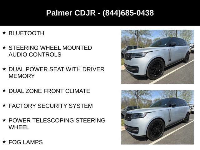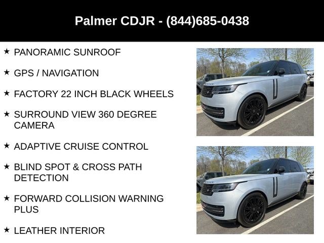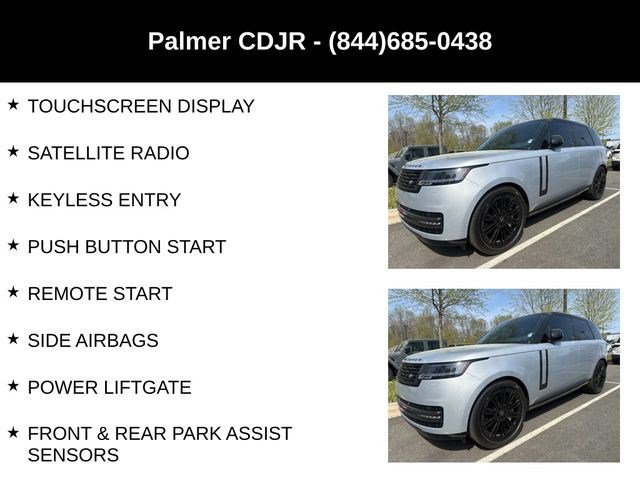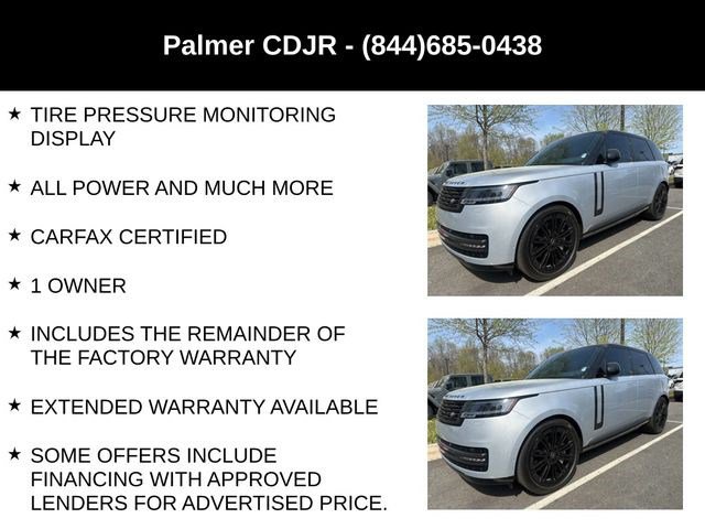 SE 4.4L V8 TWIN TURBO, 23 INCH GLOSS BLACK WHEELS, HEADS UP DISPLAY, PANORAMIC SUNROOF, GLOSS BLACK GRAND VENEER, SHADOW EXTERIOR PACKAGE, EBONY CONTRAST BLACK ROOF, MERIDIAN 3D SOUND SYSTEM, GPS / NAVIGATION, SURROUND VIEW 360 DEGREE CAMERA, ADAPTIVE CRUISE CONTROL, BLIND SPOT & CROSS PATH DETECTION, FORWARD COLLISION WARNING PLUS, LEATHER INTERIOR, TOUCHSCREEN DISPLAY, SATELLITE RADIO, KEYLESS ENTRY, PUSH BUTTON START, REMOTE START, SIDE AIRBAGS, POWER LIFTGATE, FRONT & REAR PARK ASSIST SENSORS, BLUETOOTH, STEERING WHEEL MOUNTED AUDIO CONTROLS, DUAL POWER SEAT WITH DRIVER MEMORY, DUAL ZONE FRONT CLIMATE, FACTORY SECURITY SYSTEM, POWER TELESCOPING STEERING WHEEL, FOG LAMPS, TIRE PRESSURE MONITORING DISPLAY, ALL POWER AND MUCH MORE, CARFAX CERTIFIED, 1 OWNER, INCLUDES THE REMAINDER OF THE FACTORY WARRANTY, EXTENDED WARRANTY AVAILABLE, SOME OFFERS INCLUDE FINANCING WITH APPROVED LENDERS FOR ADVERTISED PRICE.. Silver 2025 Land Rover Range Rover SE 4.4L V8 Twin Turbocharged AWDMUST MENTION OR PRESENT AD AT TIME OF PURCHASE TO RECEIVE THE ADVERTISED PRICE. Welcome to Palmer DCJR! We are proud to be a family-owned business serving the greater Roswell area for 30 years. Here at Palmer, we make customer service our top priority. We are also pleased to be able to offer a buying process that can be completed from start to finish online! We will deliver your new vehicle right to your door. Whether you are in search of your next car or looking for a service center you can trust, Palmer Dodge Chrysler Jeep Ram is the place to go. Give us a call, fill out our online form, or stop by for an incredible automotive experience today! THE ADVERTISED PRICE INCLUDES ALL INCENTIVES INCLUDING IRS EV CREDIT BUT DOES NOT INCLUDE SALES TAX, VEHICLE REGISTRATION FEES, OTHER FEES REQUIRED BY LAW, OR FINANCE CHARGES. SOME OFFERS INCLUDE FINANCING WITH APPROVED LENDERS FOR ADVERTISED PRICE. Palmer Dodge is proudly serving... Atlanta, Buckhead, Duluth, Suwanee, Alpharetta, Cumming, Gainesville, Flowery Branch, Buford, Roswell, Jasper, Canton, Woodstock, Peachtree, Ball Ground, Jefferson, Athens, Augusta, Buford, Conyers, Decatur, Tucker, Milton, Douglasville, Alpharetta, Marietta, Sandy Springs, Dunwoody, Johns Creek, Lawrenceville, Lilburn, Chamblee, Stone Mountain, Vinings, Norcross, Oakwood, Sugar Hill, Athens, Kennesaw, Dawsonville. We also service the following states... Georgia, Florida, Alabama, South Carolina, North Carolina, Mississippi, & more.