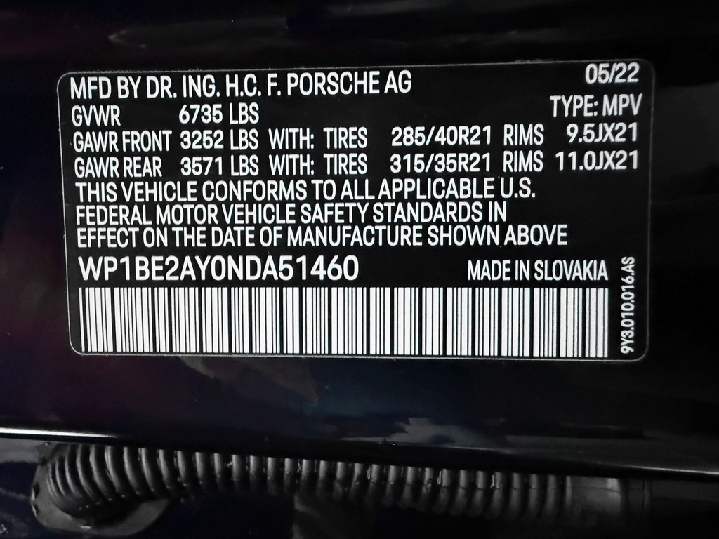 • VIN Number: WP1BE2AY0NDA51460