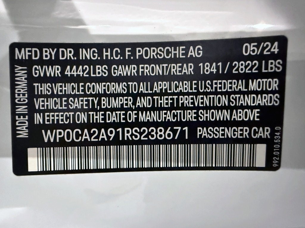 • VIN Number: WP0CA2A91RS238671