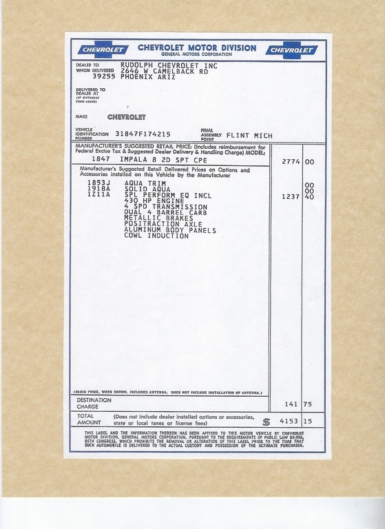 (The owner has available, 48 of the 50 Z-11 VIN numbers, and a factory list of all the Z-11 part numbers)