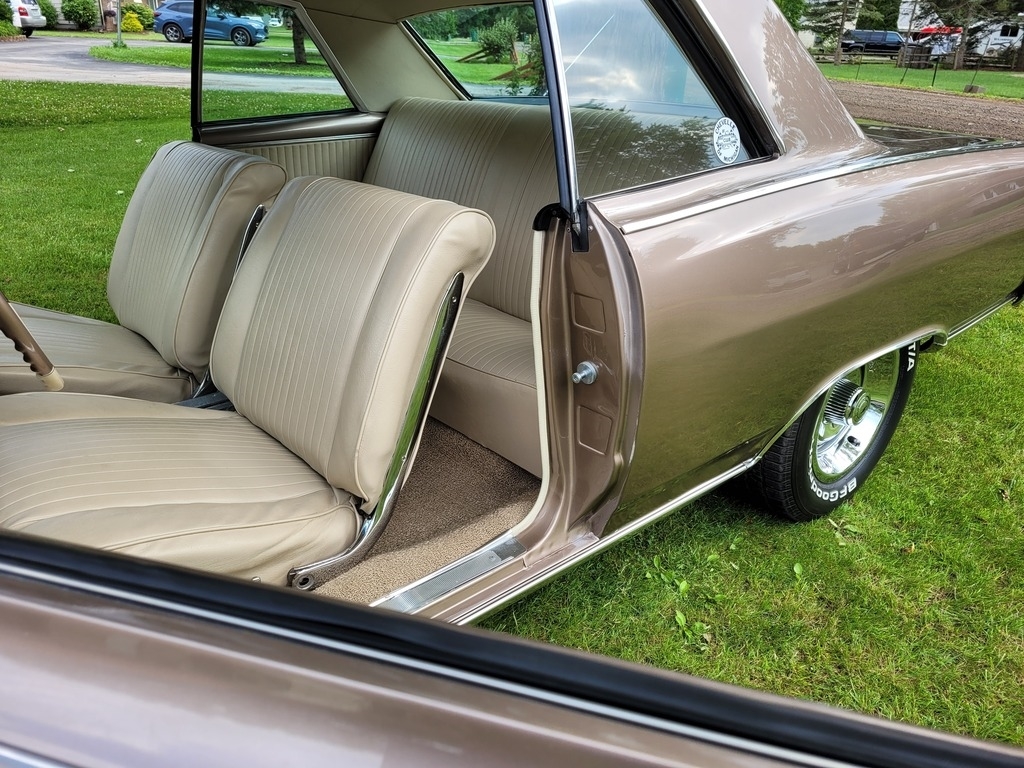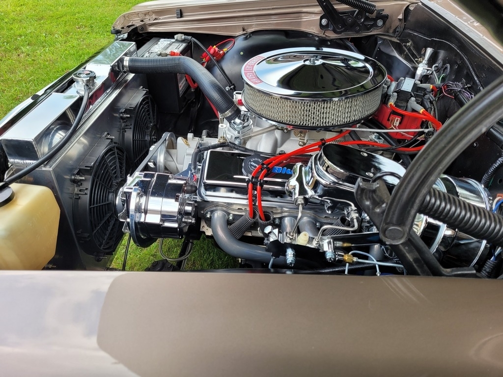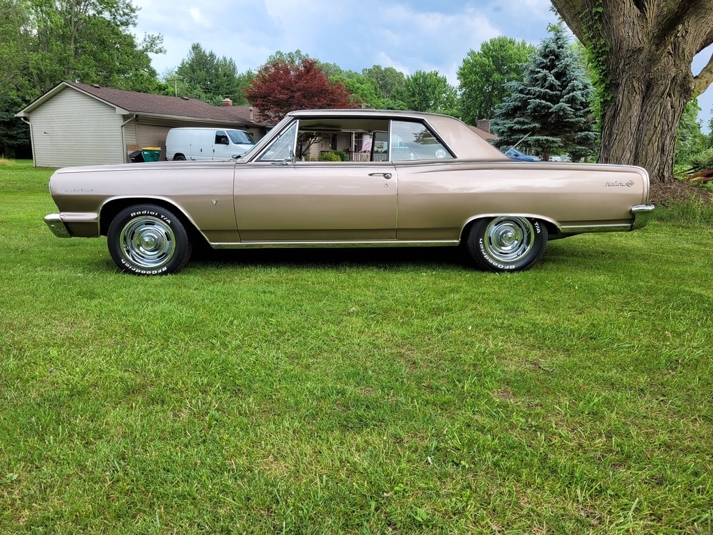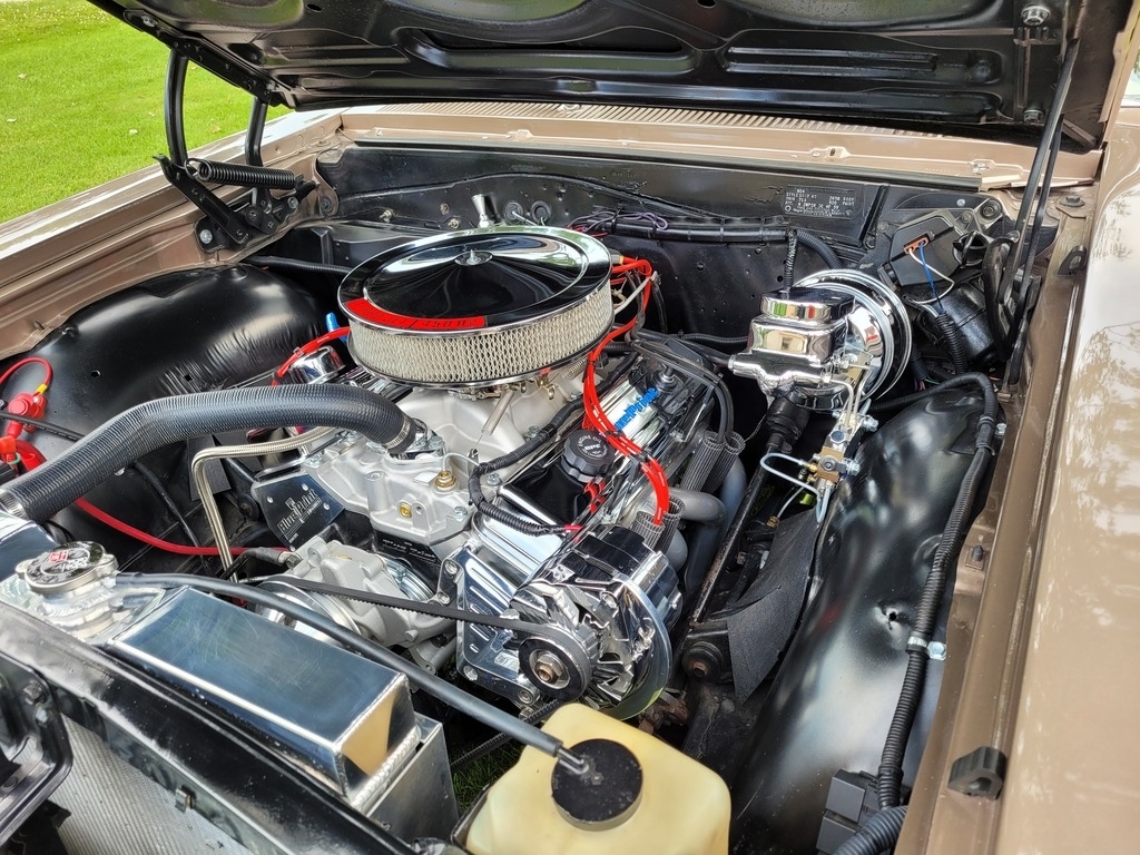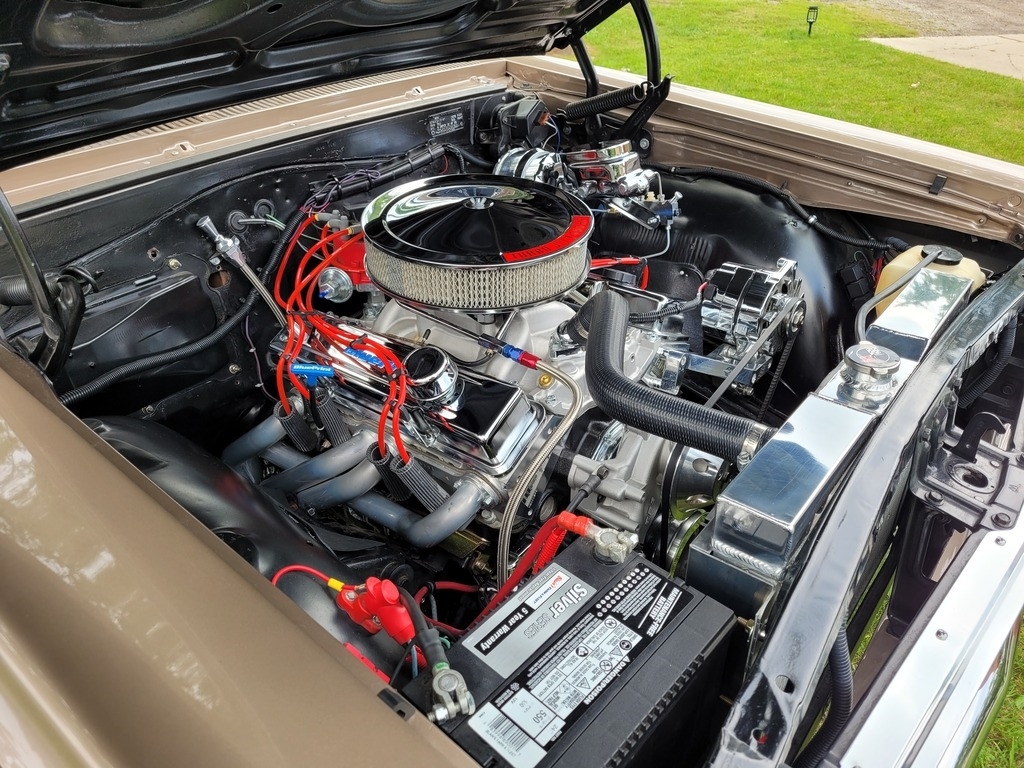 Finished in a striking Almond Fawn Poly Tan, this Chevelle is complemented by a pristine white interior, delivering the perfect blend of classic nostalgia and modern performance. Under the hood, you'll find a Blueprint 383 Crate V8 producing an impressive 460 horsepower and 454 lb-ft of torque, paired with a built Turbo 400 automatic transmission and a 2800 stall converter for serious street performance.