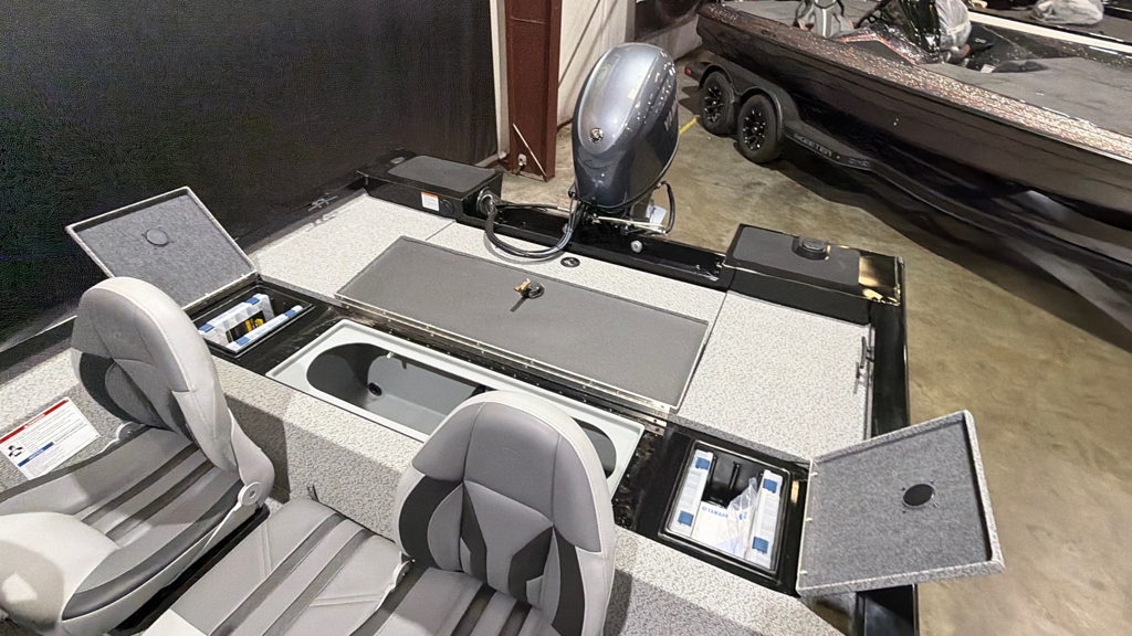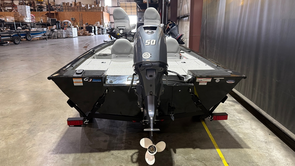 Boat Pkg. Includes: Yamaha 50, Black Exterior, Gray Upholstery, 55LB Edge TM, Helix 5 Graph, 2 Bank Charger, AL Prop, Single Axle Steel Trailer W/Spare and Mount