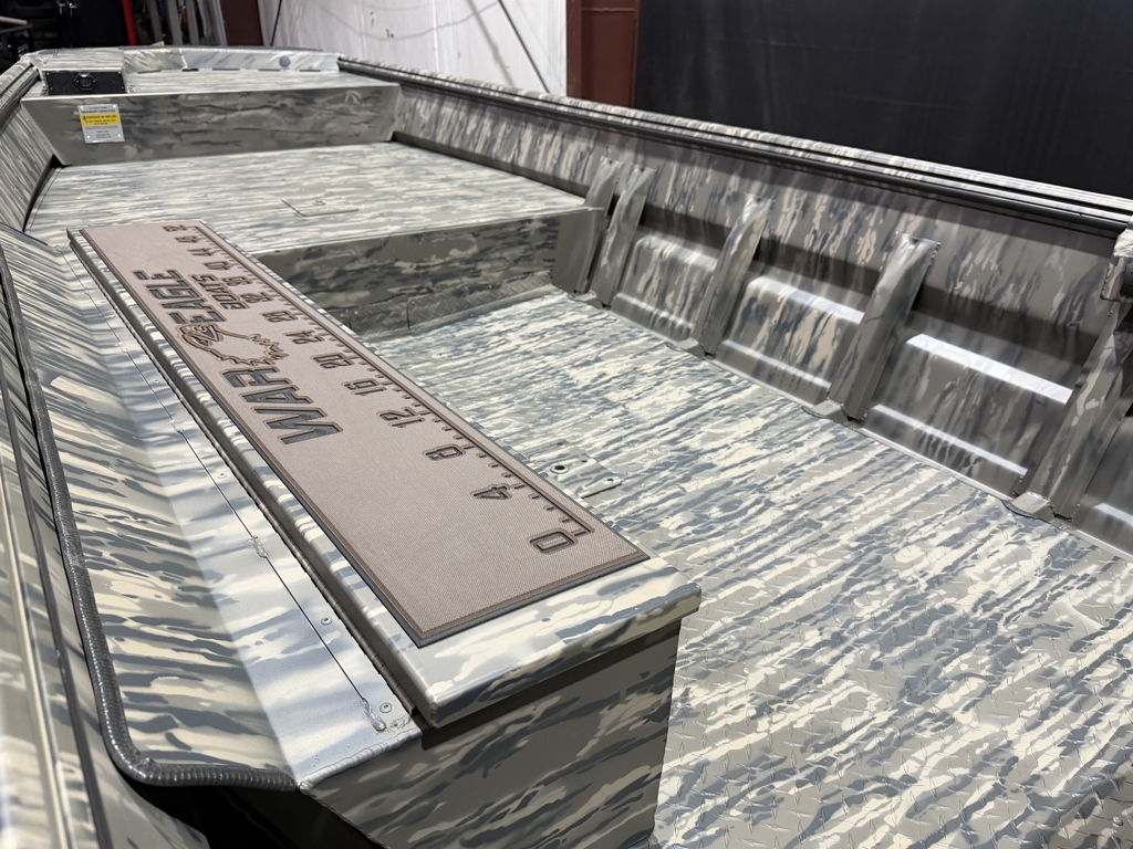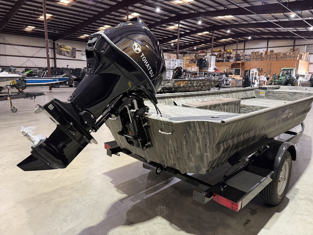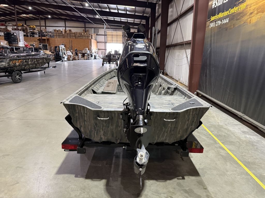 Boat Pkg. Includes: Tohatsu 40, Legacy Camo, Duck Bill w/ LED Upgrade, Tread Plate Floor, Hydro Turf Pad, 60" Gun Box, Trolling Motor Bracket, Running Light Pkg., Hinged Rear Lid, Single Axle Steel Trailer