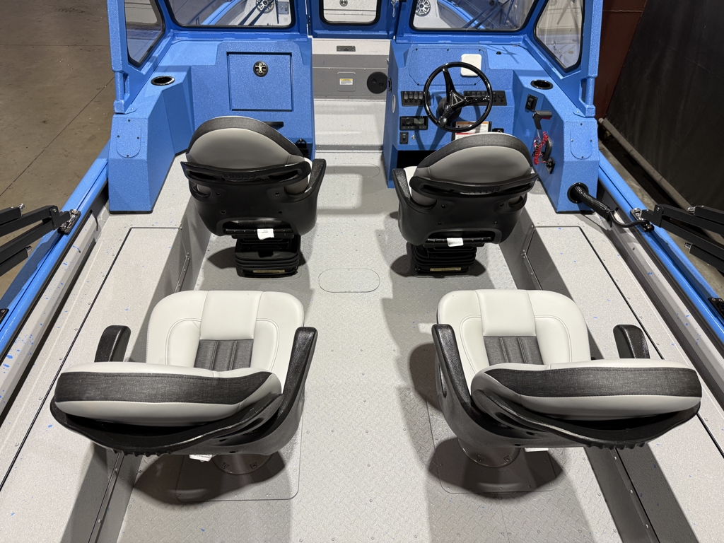 Boat Pkg. Includes: Suzuki 250SS, Black Polished SS Steering Wheel, Windshield with Wiper, 3 Step Ladder, Bimini Top, Air Ride Captains Chairs, Tandem Axle Steel Trailer