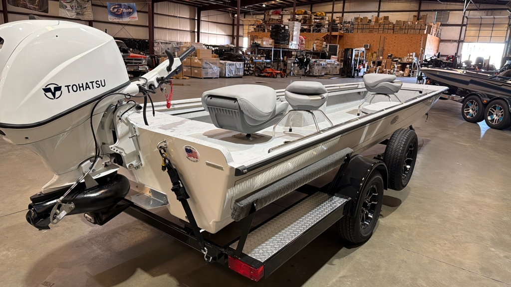 Boat Pkg. Includes: Centric Seats, Rod Trays, Seat Stands, White Tohatsu 40 Jet, Single Axle Steel Trailer