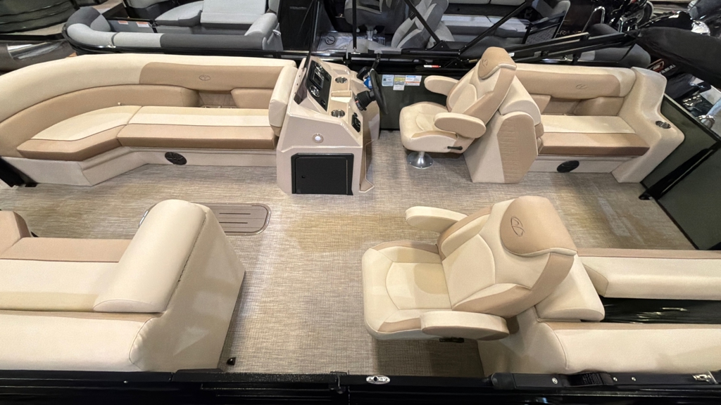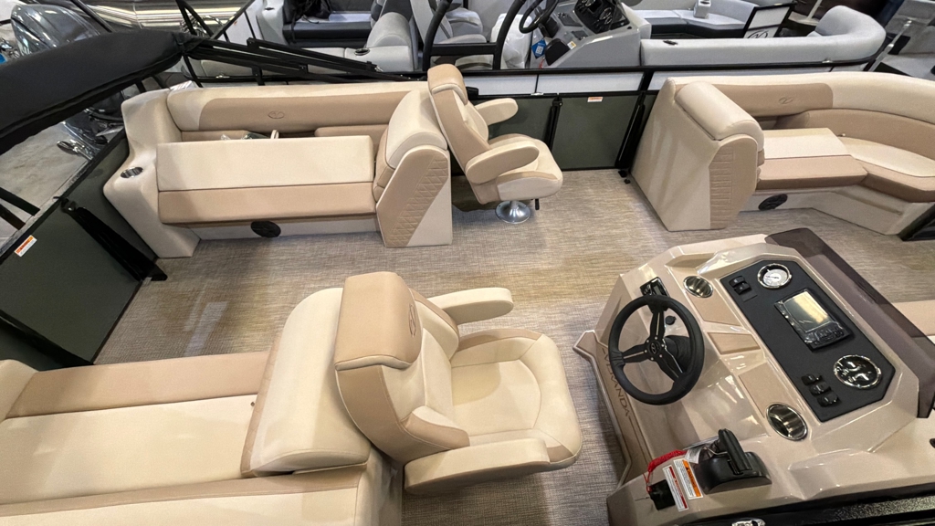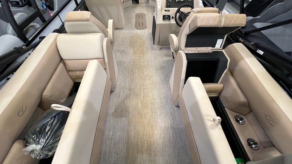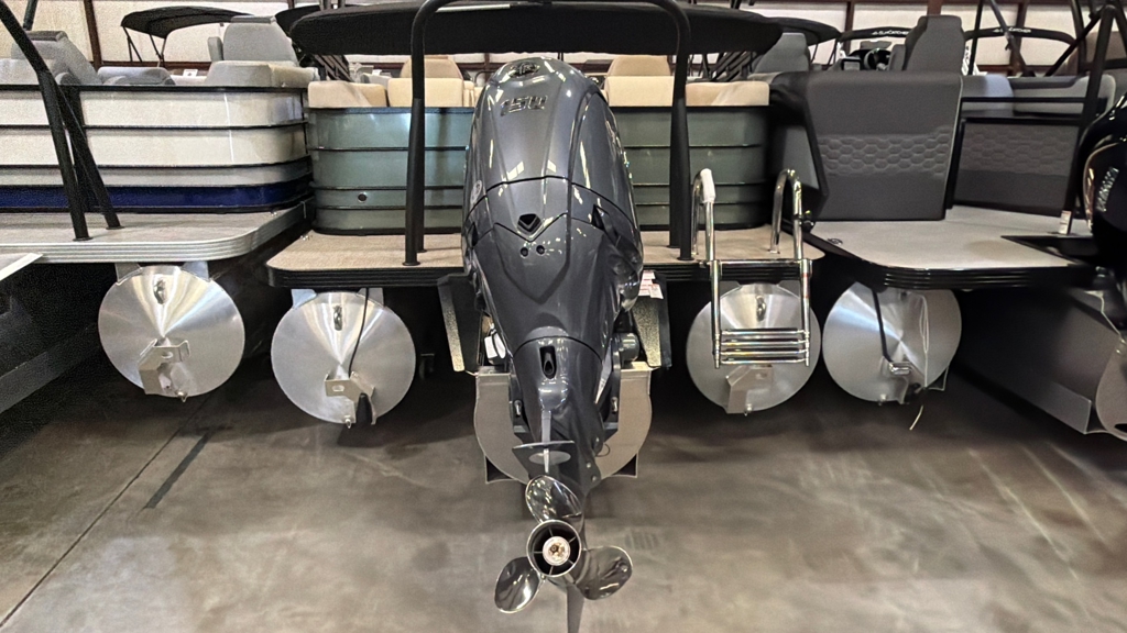Boat Pkg. Includes: Yamaha 150, Sage Green Metallic, Helm Chair Upgrade, Power Bimini Top Upgrade, Ski Tow Bar, Garmin Striker 5, In floor Storage, PowerTech Prop