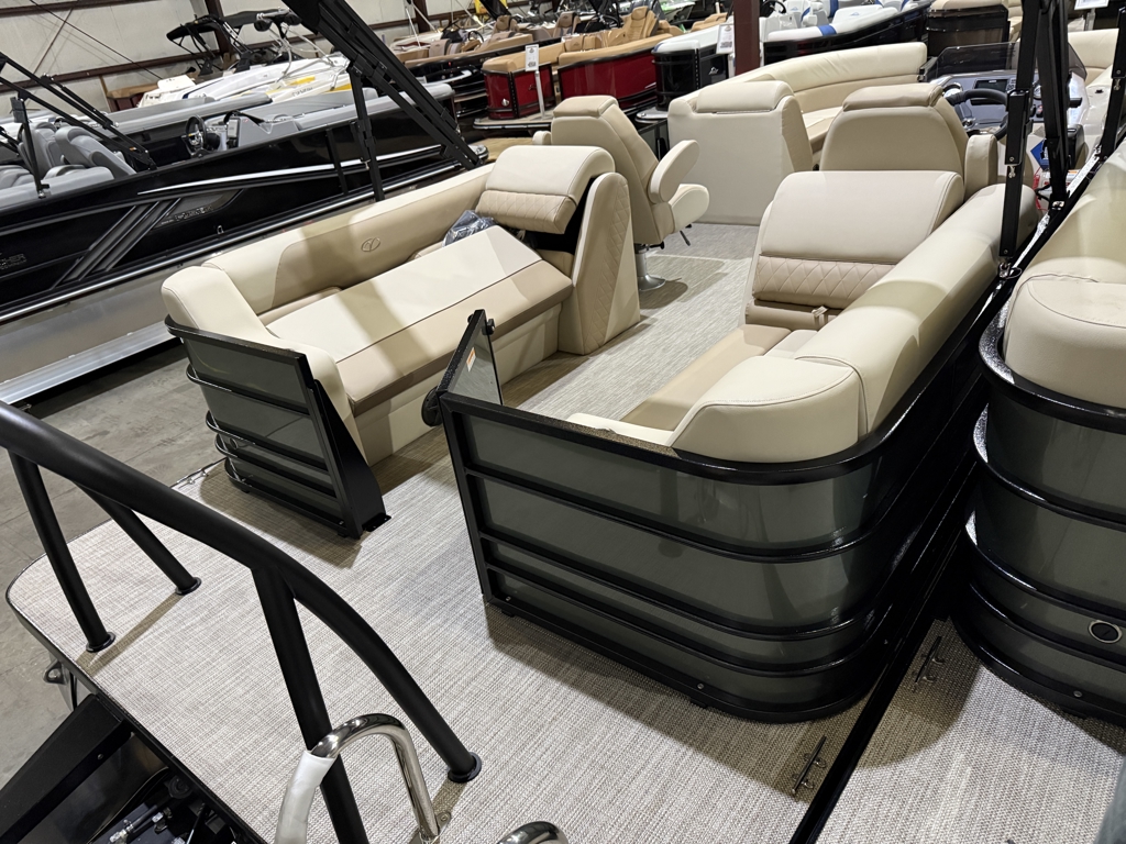 Boat Pkg. Includes: Yamaha 150, Sage Green Metallic, Helm Chair Upgrade, Ski Tow Bar, Garmin Striker 5, In floor Storage, PowerTech Prop