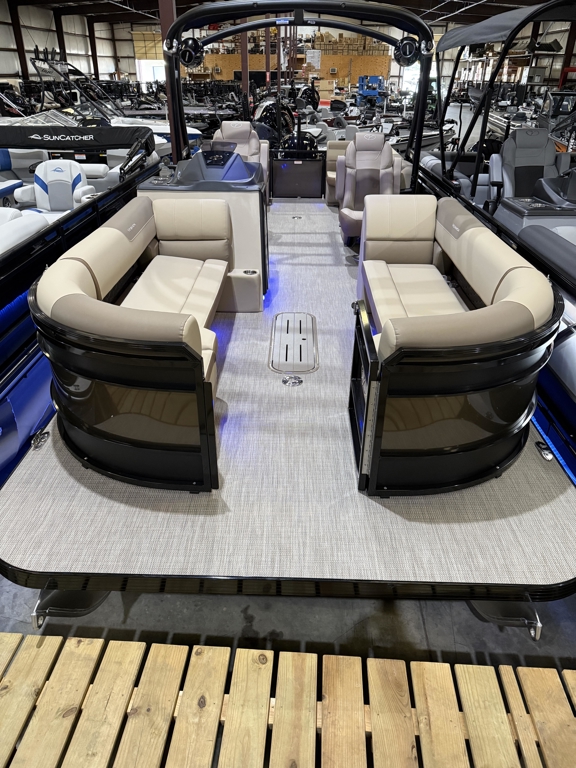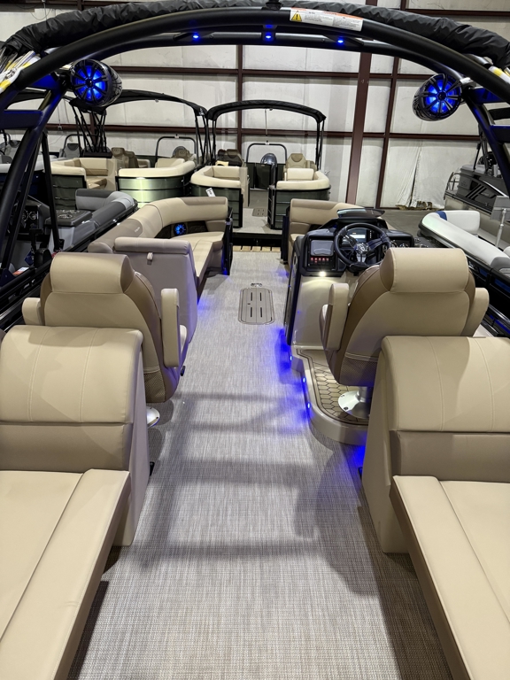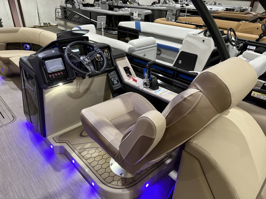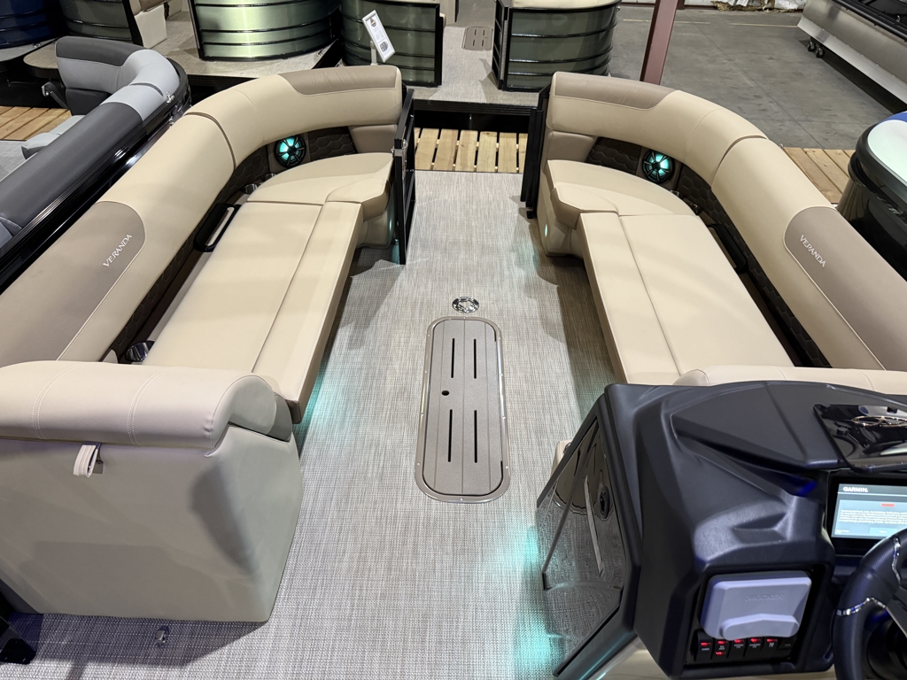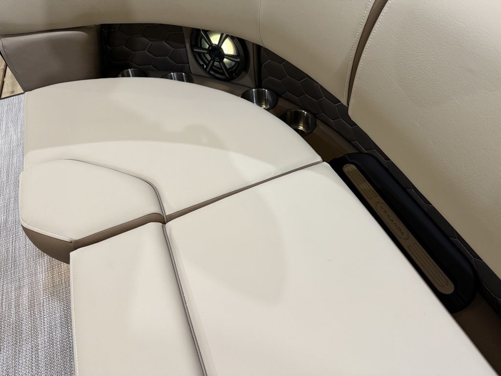 The 2026 Veranda Luxury Pontoons Relax Series RC (Rear Chaise), available in 235 and 265 models, blends wrap-around luxury with unmatched comfort. These new Relax models feature exciting upgrades including immersive audio and lighting systems, a fiberglass console, refreshed upholstery, and sleek exterior enhancements. To elevate your experience even further, Veranda offers Tower Packages across all Relax Series RC models—adding extra flair and function to your time on the water.