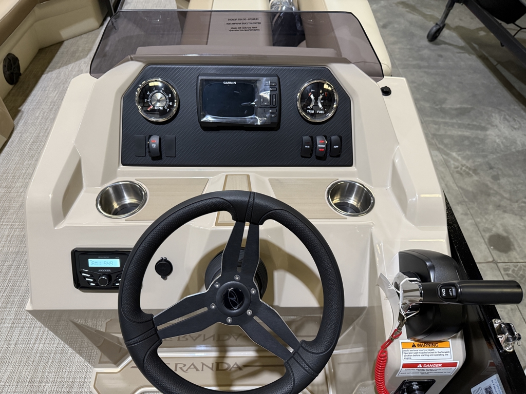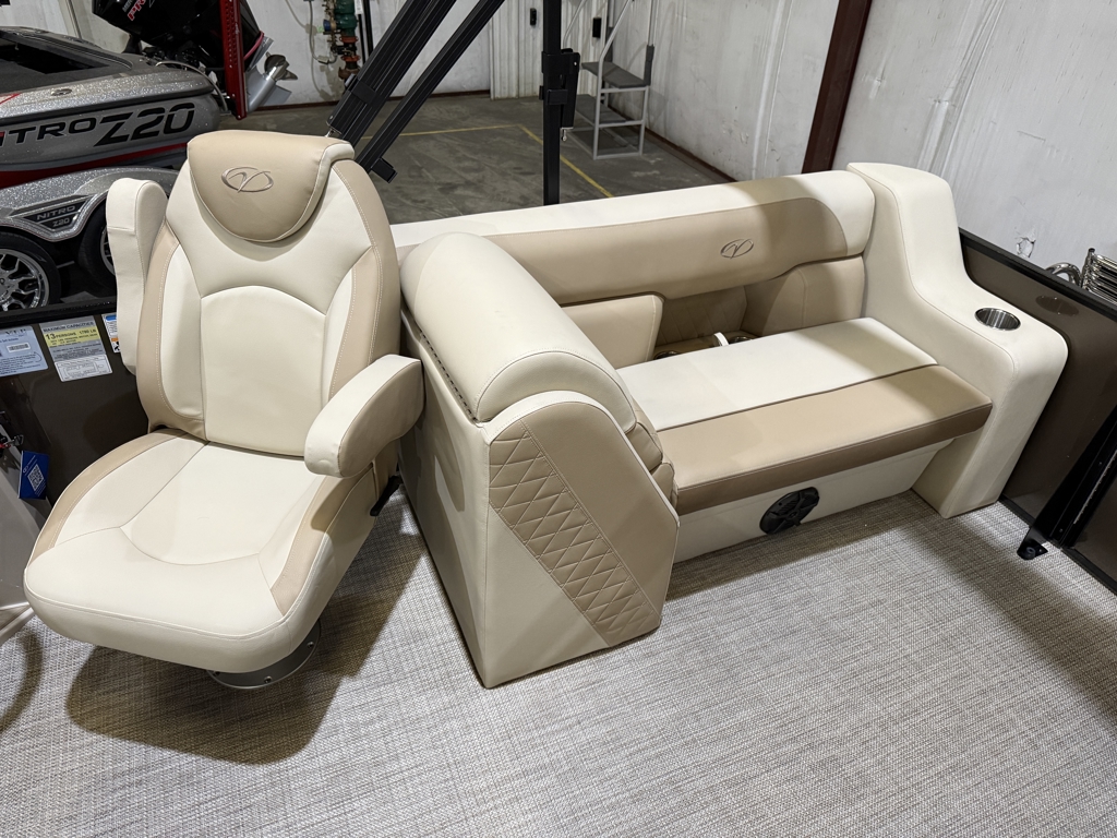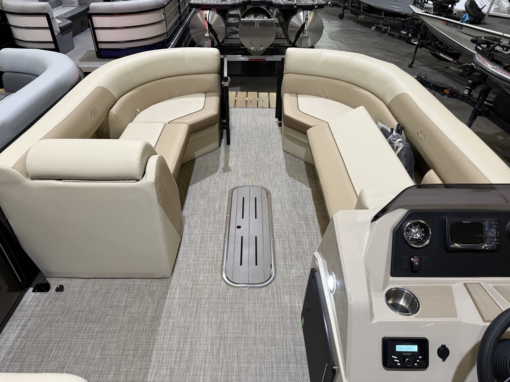 Boat Pkg. Includes: Yamaha 150, Caribou Brown Metallic Color, Black Powder Coated Rails, Helm Chair Upgrade, Hydraulic Steering, Ski Tow Bar, Garmin Striker 5CV, Infloor Storage Upgrade, PowerTech Prop, Woven Tan Flooring Upgrade