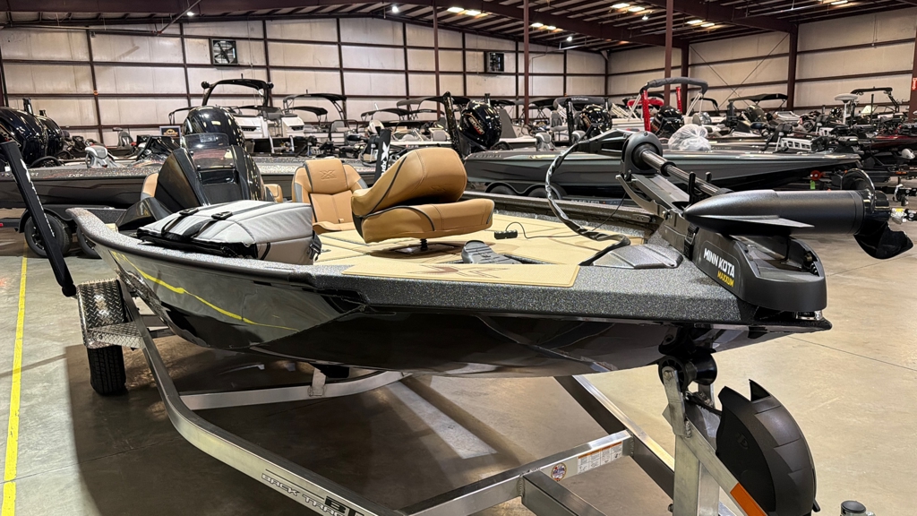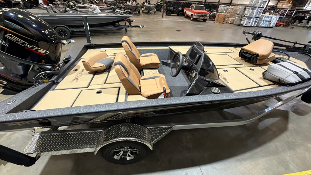 Boat Pkg. Includes: Yamaha 115, Saddle Seating, Bay Star Hydraulic Steering Upgrade, 3 Bank Charger Upgrade, Electronics Pkg. Upgrade, Helix 7 Graph, Maxxum 70LB Trolling Motor, Charcoal Metallic Paint, Spare Tire and Mount, Single Axle Aluminum Trailer