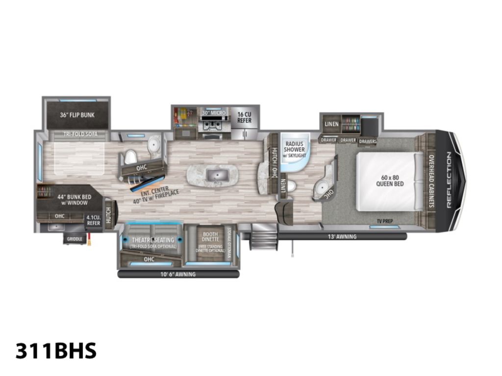 The Grand Design Reflection combines luxury, value, and towability in one amazing package. Grand Design’s commitment to exceeding customer expectations, in quality and service, has quickly made the Reflection a top-selling name in North America. If you want the best-in-class, you found it.