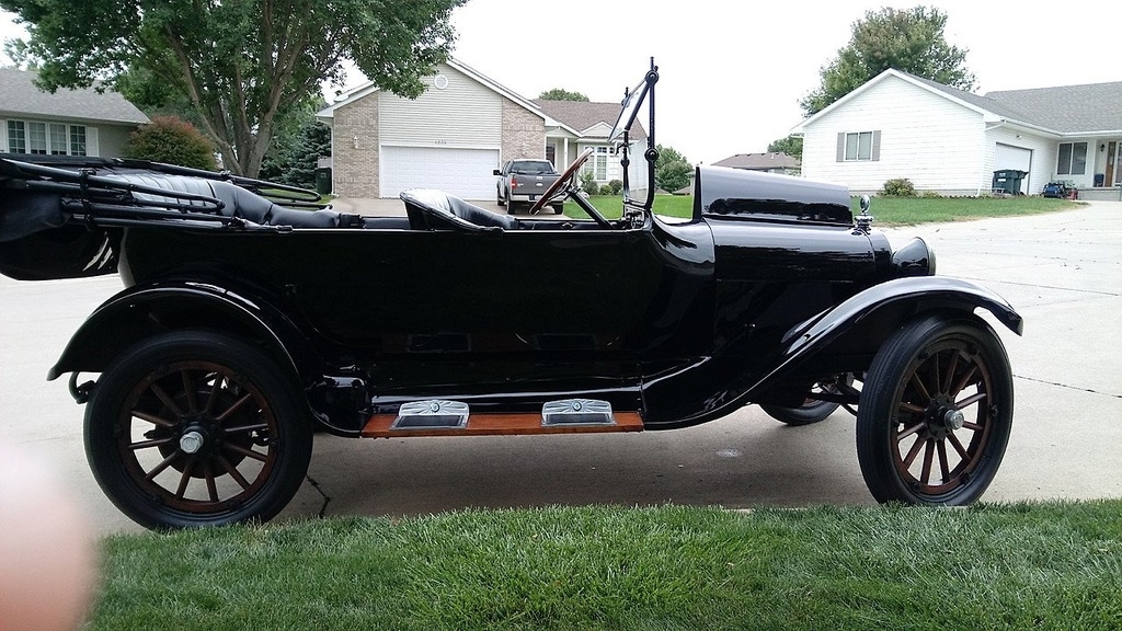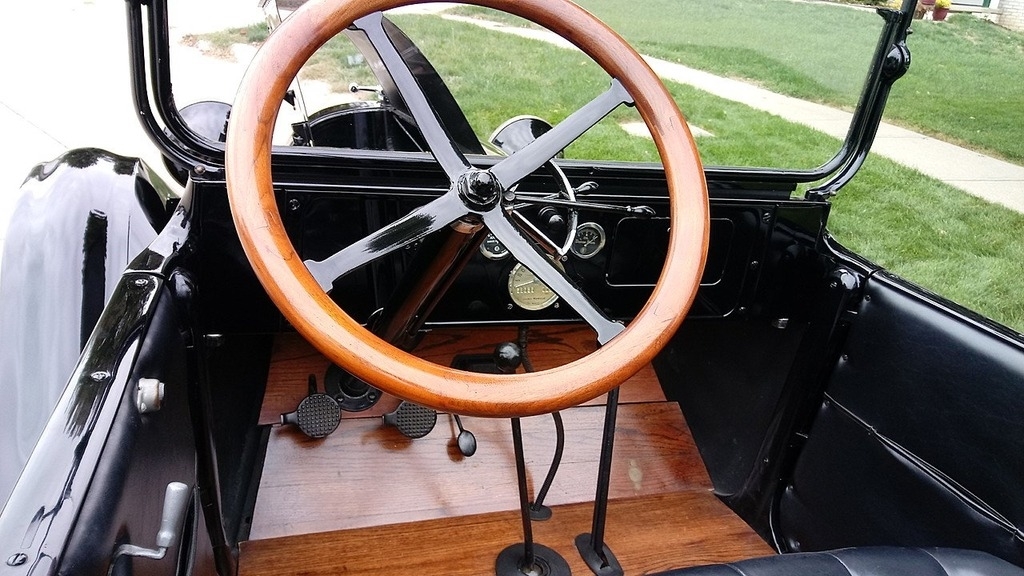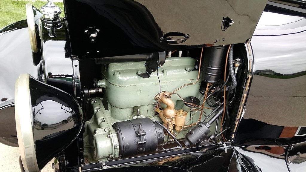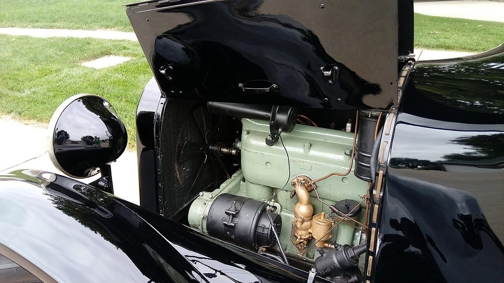 This 1917 Touring Convertible has had a frame off restoration 2076 miles ago. Under the hood, it has a 4-cylinder motor paired with a manual transmission.