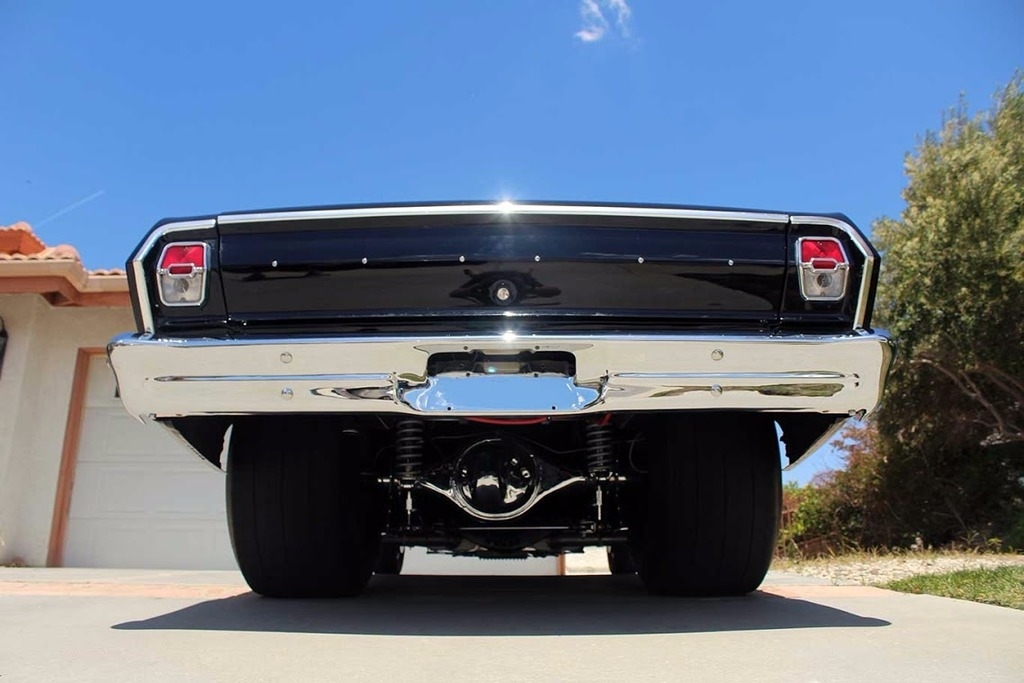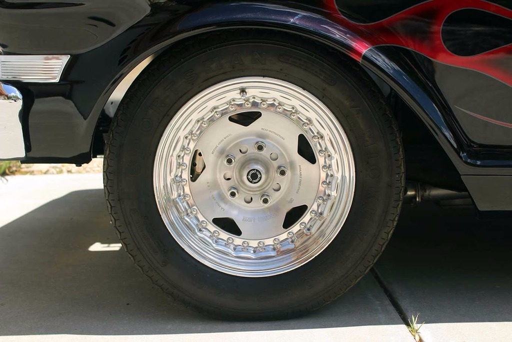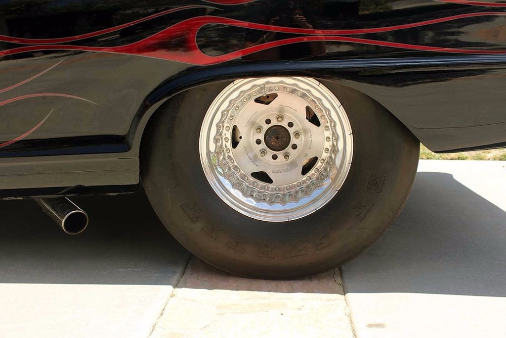 No expense was spared underneath this Pro Street Nova II, which features a fully chromed Chris Alston Chassisworks front end, a fully chromed Ford 9 inch rear end with 4:56 gears, and a Chris Alston 4-link Pro Street back-half kit. Suspension is coil over shocks front and rear. Tires are mounted on classic Centerline racing wheels to complete the Pro Street look.
