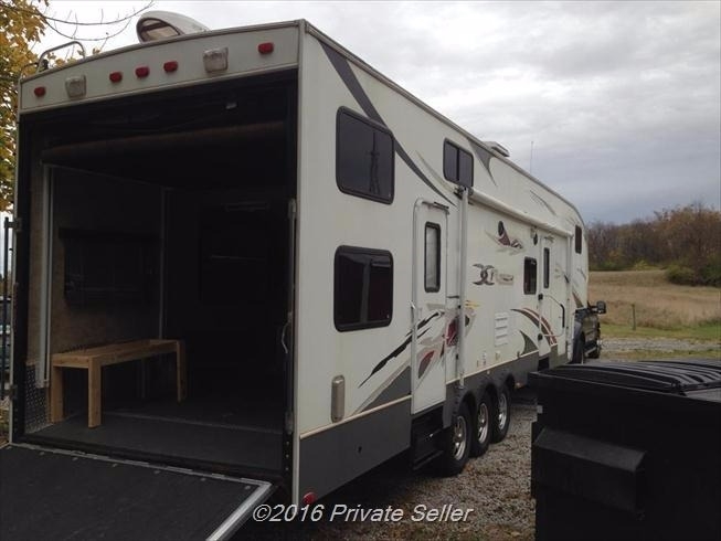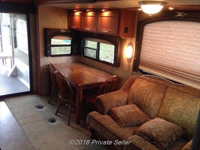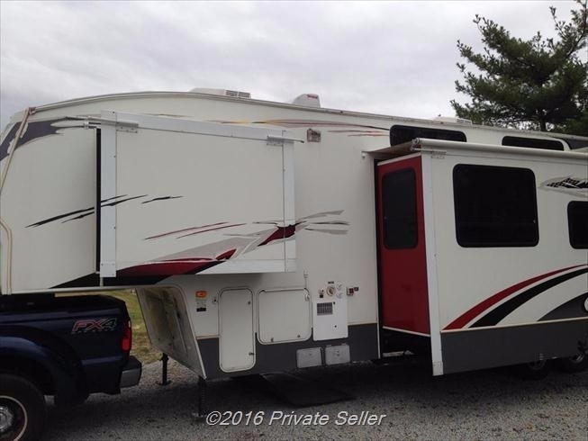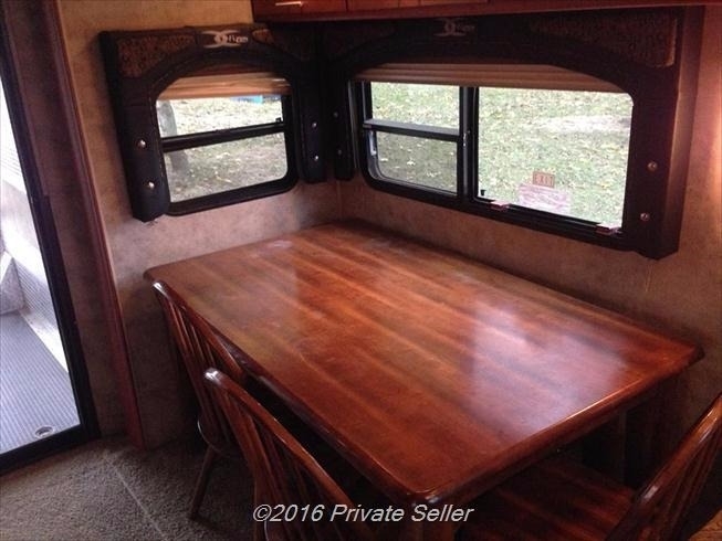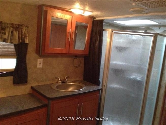 SELLER'S NOTE: There is some cosmetic damage to the underbelly on the right side that does not require repair. There is a small light just forward of the tires that no longer works. There are a couple interior light bulbs burnt out. Forward awning mount lock is broken but the awning still works. One attachment point for roof access ladder has come unscrewed but you can still use it. Seller has replaced the black tank valve, converter, battery and brakes. The trailer is fully winterized and the seller doesn't want to un-winterize it and risk damage since there are no leaks in the plumbing system. Slides and generator does work properly.