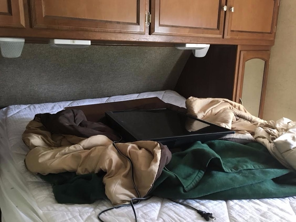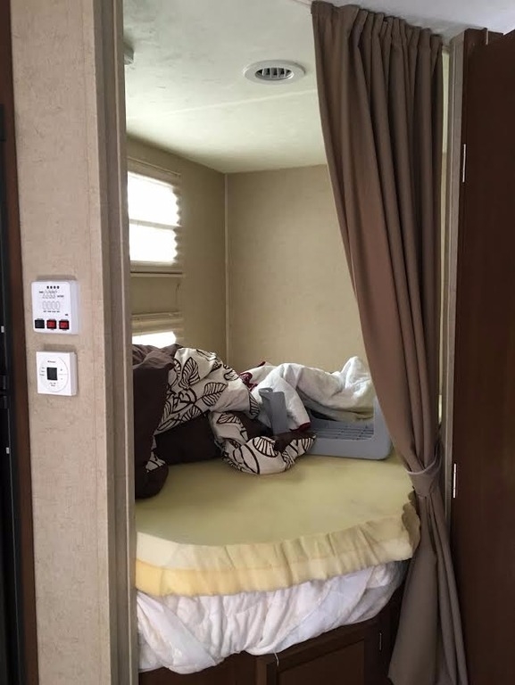sleeping space in this Coachmen Freedom Express with the double bed bunks on the