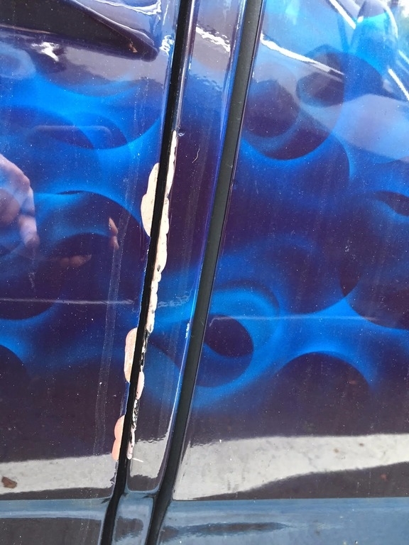 Shorty Van has a blue ghost flame custom paint that compliments the interior