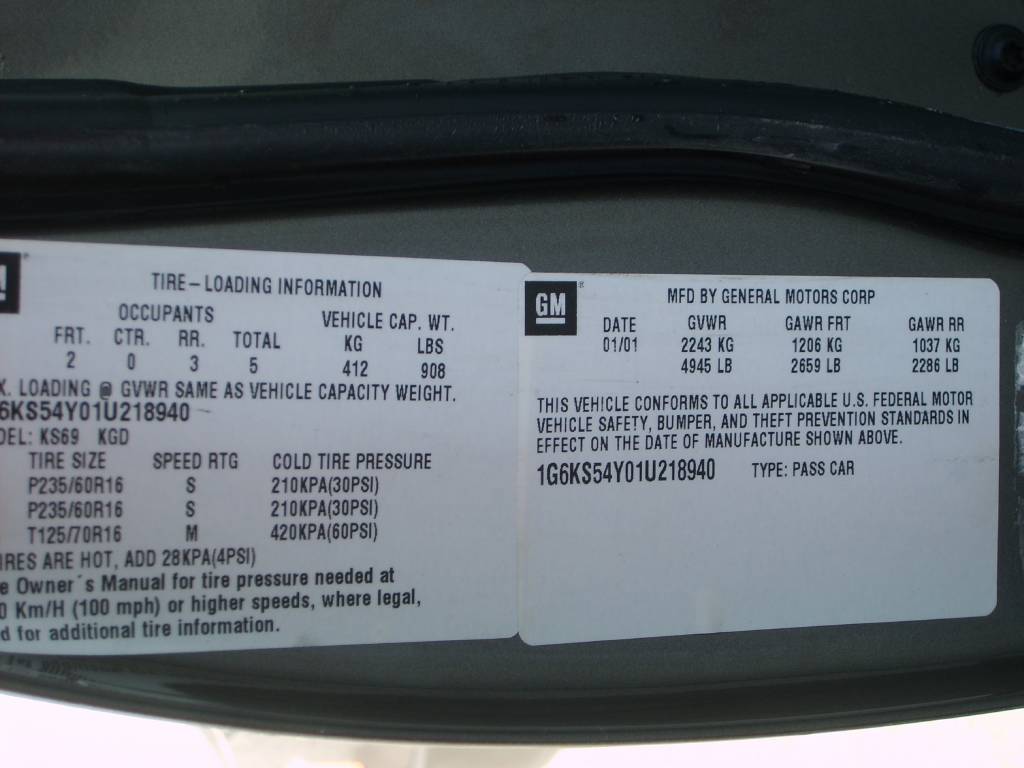 • VIN: 1G6KS54Y01U218940