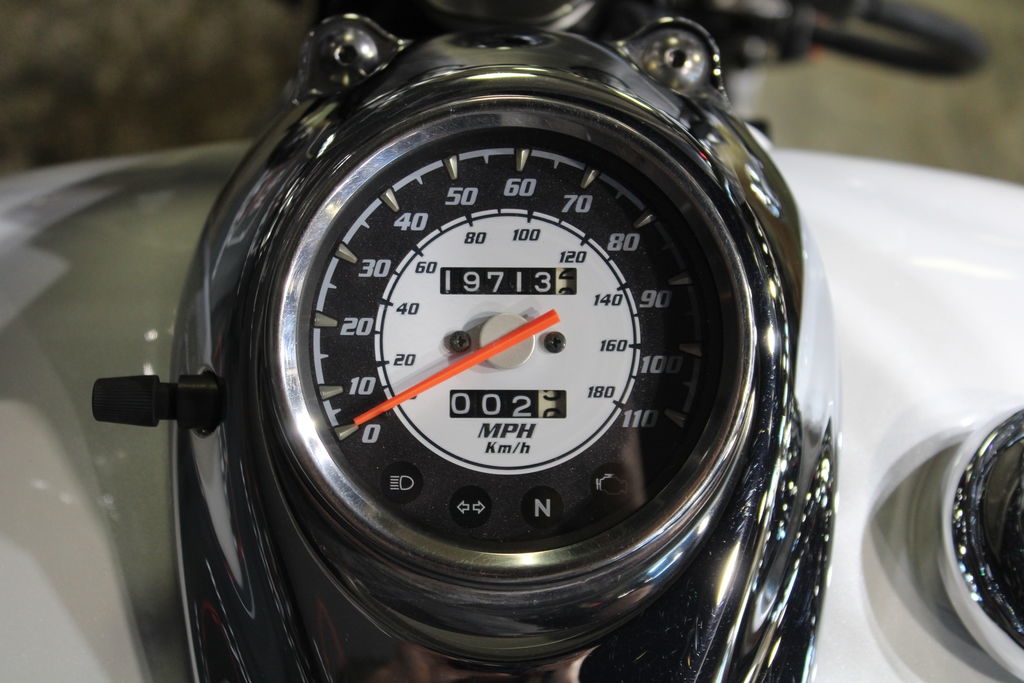 Beautiful, tank-mounted speedometer is designed with a large face for easy reading of tripmeter/odometer displays and turn signal, neutral, high beam, and engine diagnostic indicator lights.