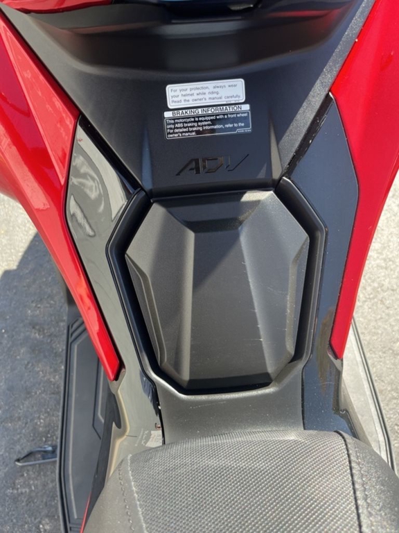 CONVENIENCEYour ADV150 has tons of available storage. First, flip open the seat and there’s a weather-resistant 27-liter main compartment that locks securely. It’s big enough for a full-face helmet and lots more. Then there’s a convenient 2-liter compartment up front with a 12-volt charging port—perfect for your phone or other quick-access needs.