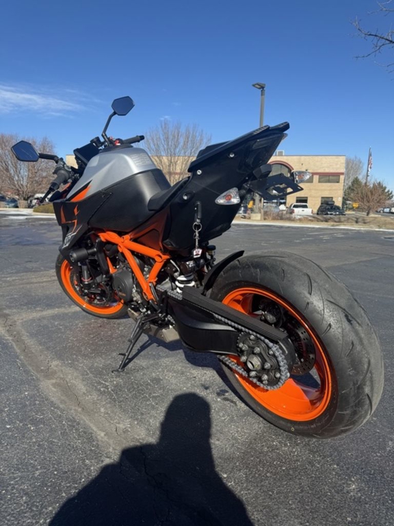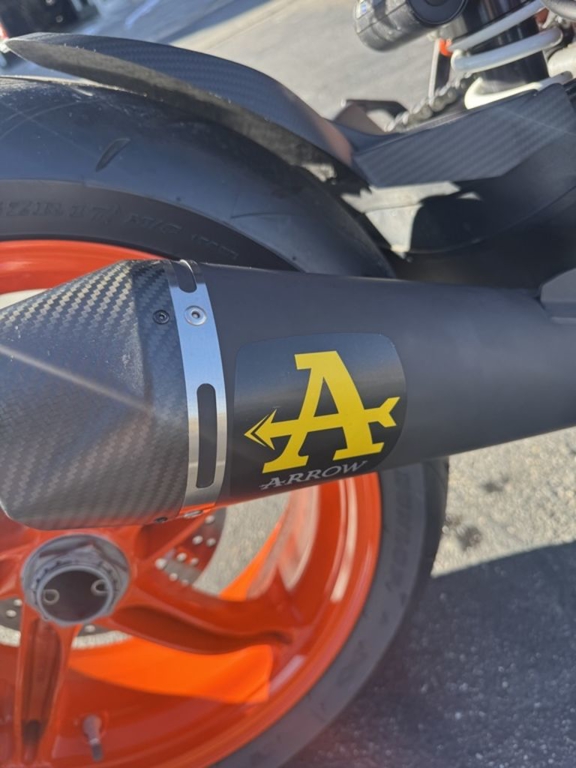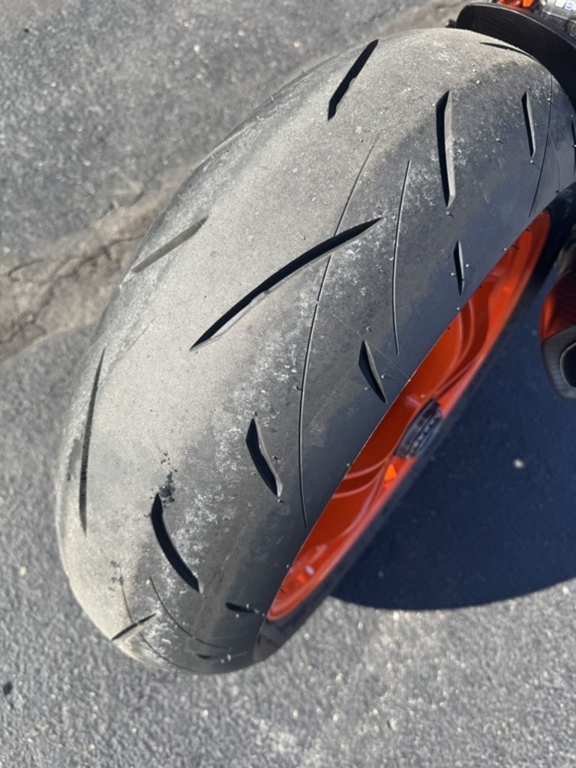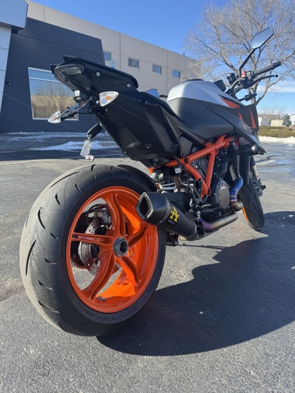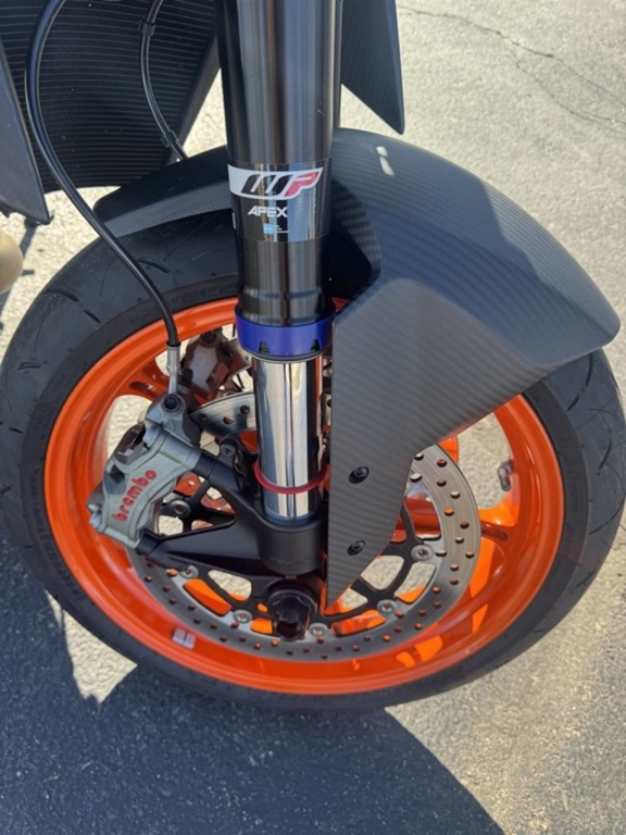 CHASSISThe frame, which uses the engine as a means to increase torsional rigidity, has resulted in the KTM 1290 SUPER DUKE R EVO being 3 times stiffer than its predecessor. This allows for an effortless, confidence-inspiring riding position which translate into an ultimately faster ride. This is achieved by maximizing the feedback from the chassis and the front tire. The frame also makes use of thicker diameter tubes with thinner walls, which is the single biggest weight saving measure on the bike - saving 2 kg compared to the previous generation model.