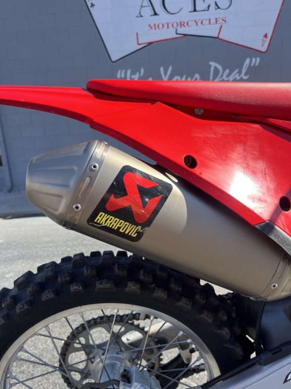 FRAMEThe technology in our frames ensures riders enjoy playful handling and an energetic feeling on any motocross tracks. Underneath the red powder coating there's a lightweight chromium molybdenum steel, hydro-formed, laser-cut and robot-welded chassis that's built to perform. Designed to be rigid where it needs to be rigid and to flex where flex is needed, it provides exceptional rider feedback, energy absorption and straight-line stability.
