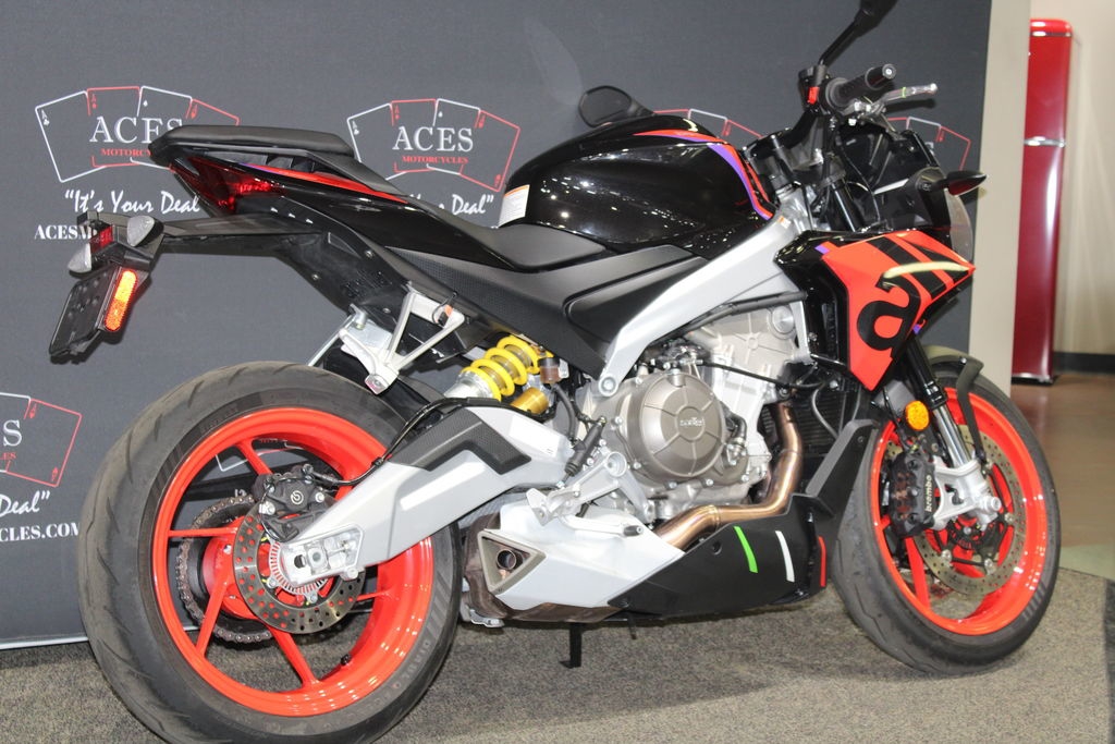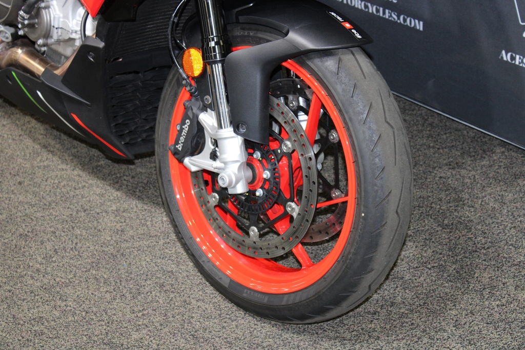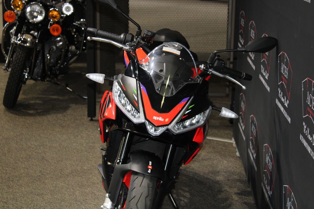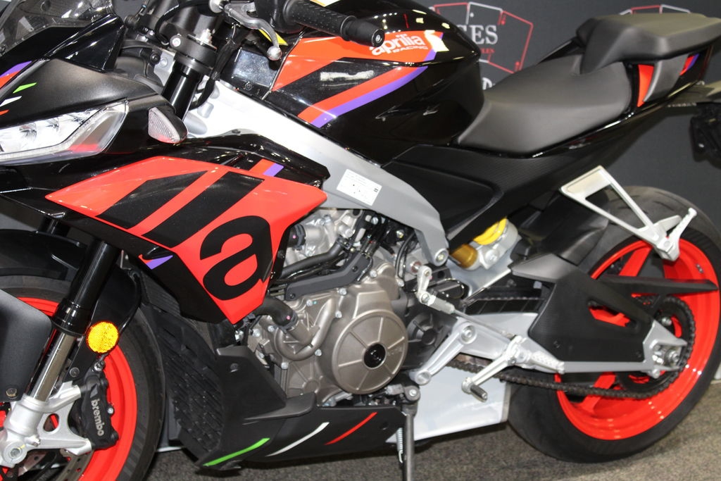 The Tuono 660 Factory APRC includes ATC (Aprilia Traction Control), AWC (Aprilia Wheelie Control) adjustable wheelie control system, ACC (Aprilia Cruise Control) to maintain the set speed without acting on the throttle; AQS (Aprilia Quick Shift), the electronic gearbox, for very quick changes without closing the throttle and without using the clutch, also equipped with a downshift function, which allows you to downshift without touching the clutch; AEB (Aprilia Engine Brake), the adjustable engine brake control system during the gas closing phase; AEM (Aprilia Engine Map), different mappings available to change the character and way of delivering engine power.