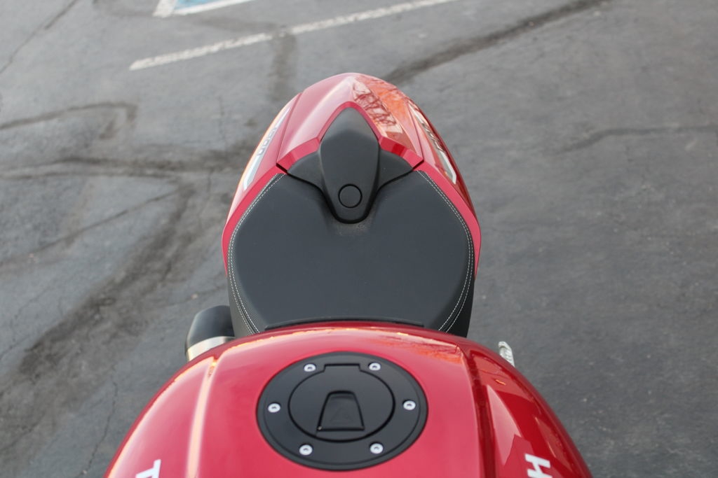 Wider handlebars and an all-new seat profile deliver a much more dynamic and natural riding position, while the footpegs are moved inboard to improve ground clearance without compromising legroom.