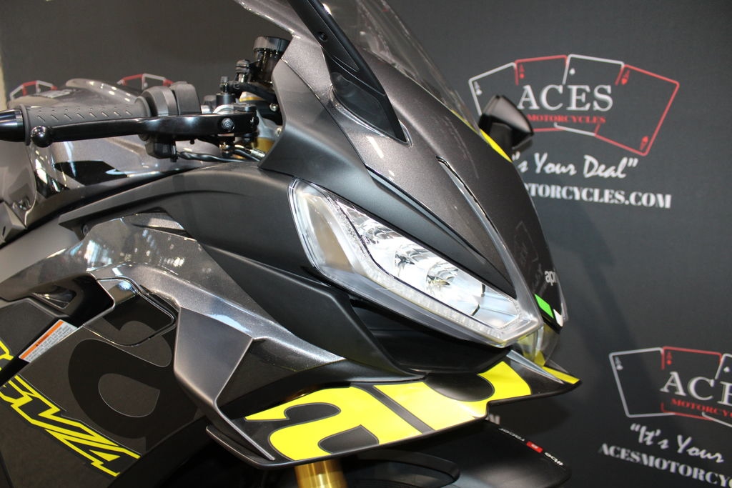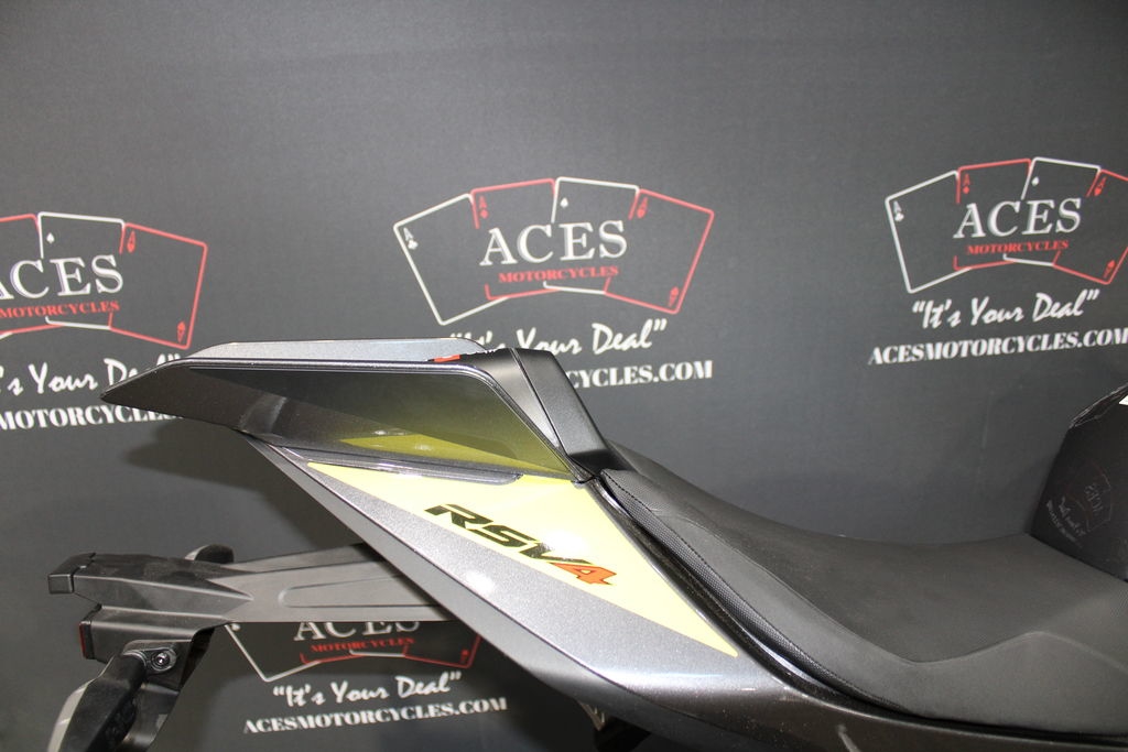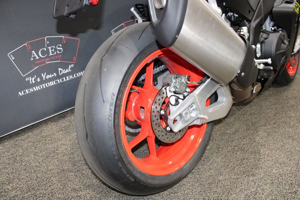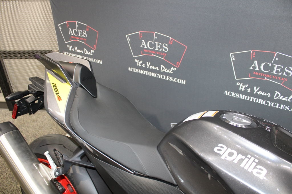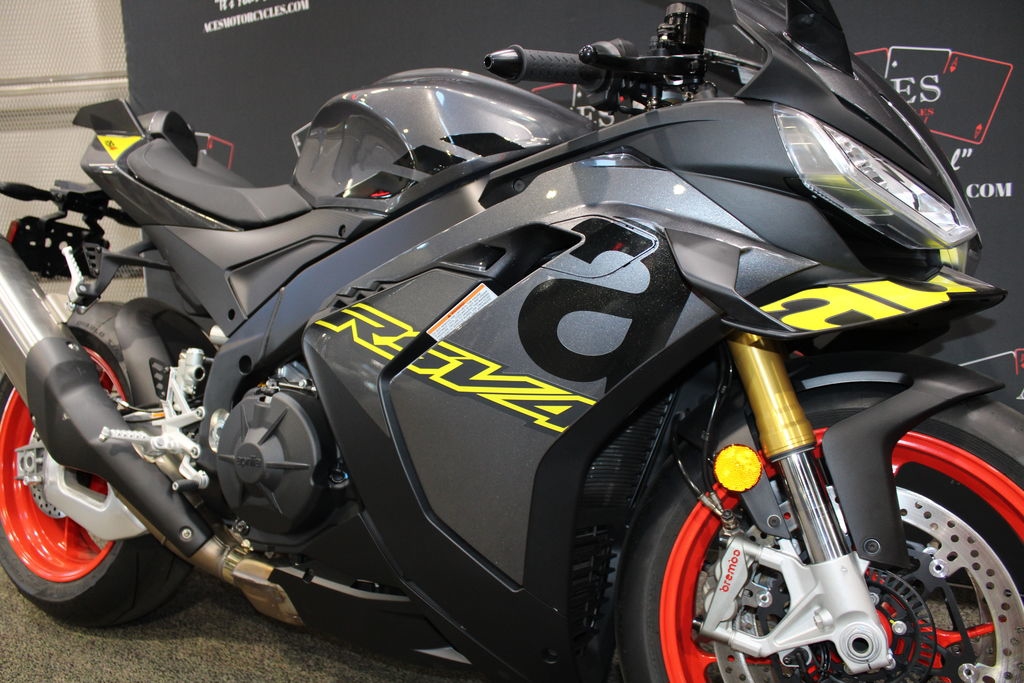 POWERThe Aprilia RSV4 is powered by the unmistakable 1099-cc 65° V4 engine, delivering 220 hp at 13000 rpm and 127 Nm of torque at 10800 rpm—figures that establish it as the most powerful street-legal superbike on the market. Courtesy of the electronic Ride-by-Wire throttle and six-axis IMU, the engine works in perfect synergy with the advanced a-PRC (Aprilia Performance Ride Control) electronics package, also adapting its response to three exclusive Riding Modes (User, Street and Sport). The a-PRC electronics suite includes ATC (Aprilia Traction Control), AWC (Wheelie Control), AEB (Engine Brake), bidirectional AQS (Quick Shift), AEM (Engine Map) and Cornering ABS.