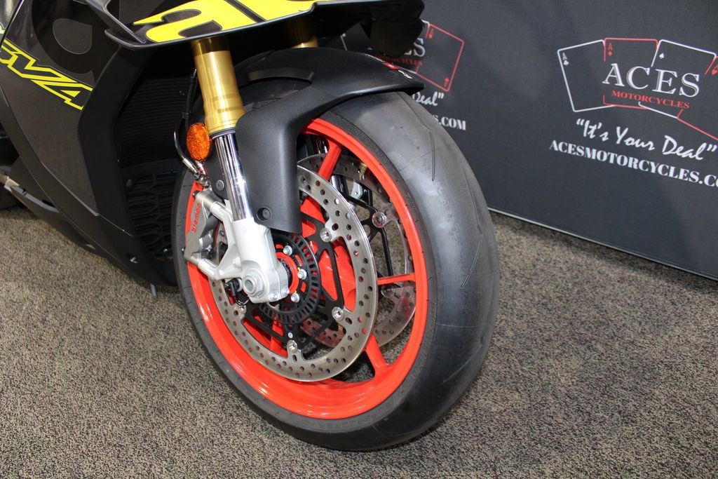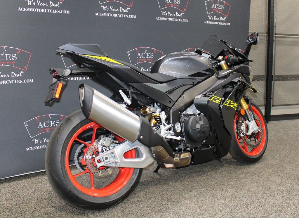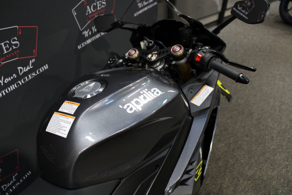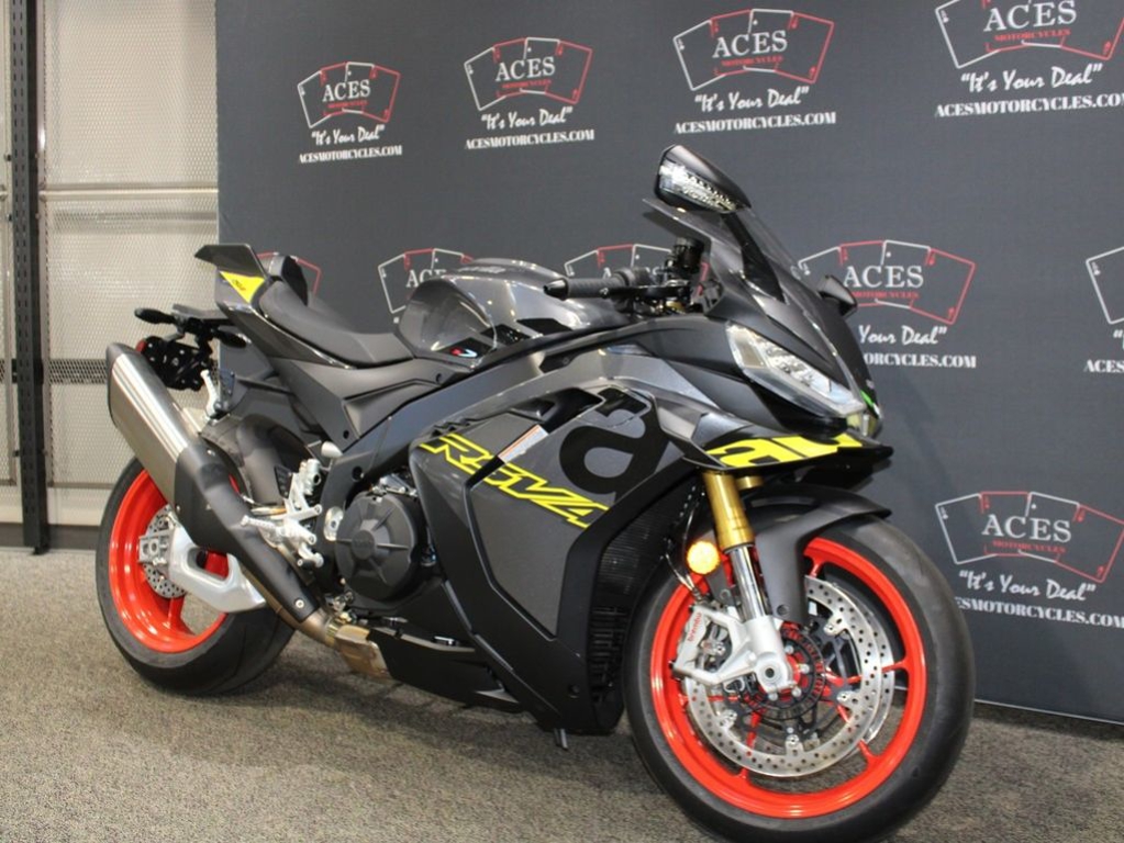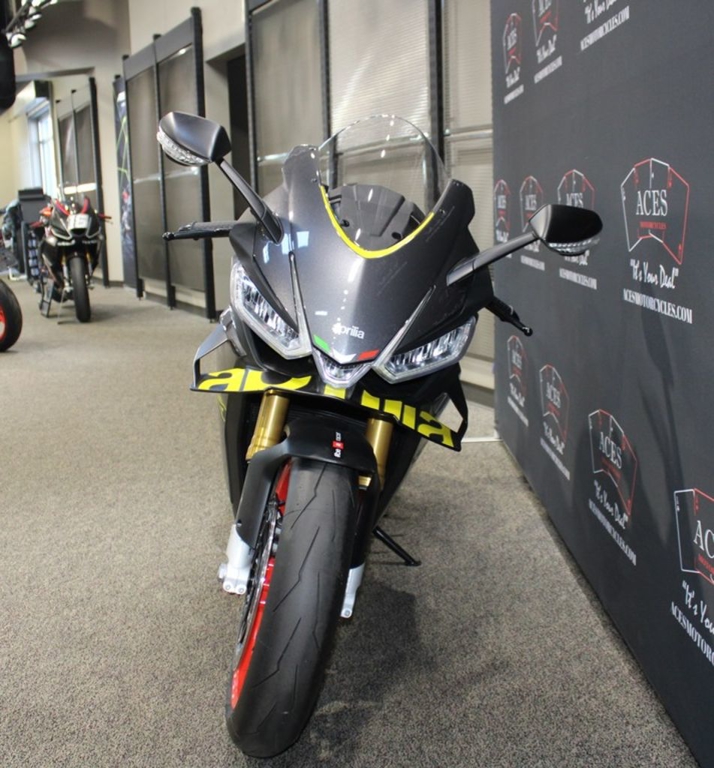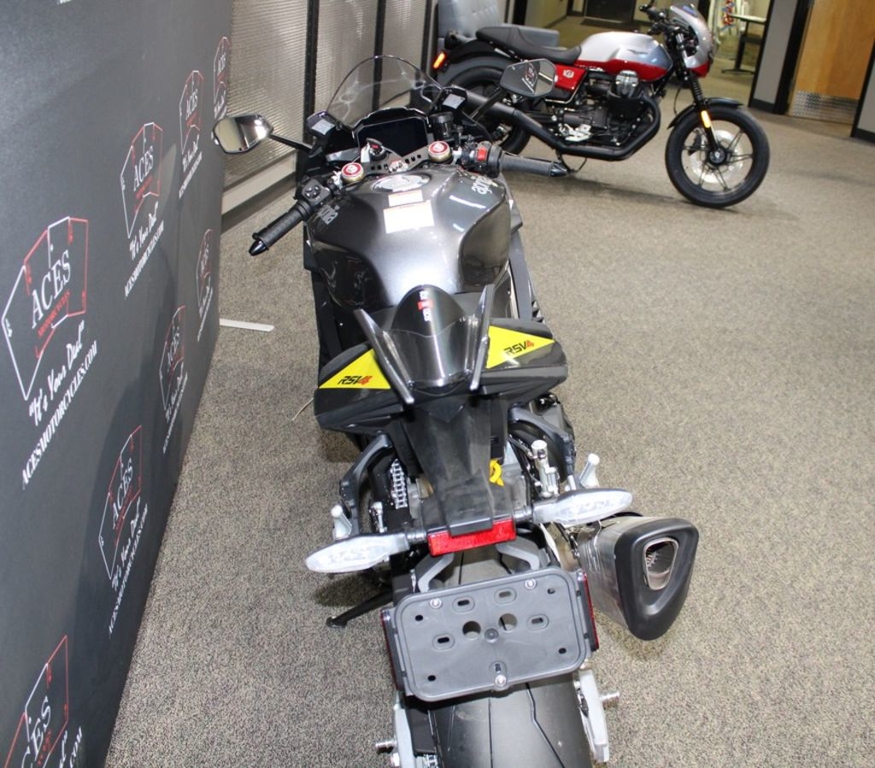 POWERThe Aprilia RSV4 is powered by the unmistakable 1099-cc 65° V4 engine, delivering 220 hp at 13000 rpm and 127 Nm of torque at 10800 rpm—figures that establish it as the most powerful street-legal superbike on the market. Courtesy of the electronic Ride-by-Wire throttle and six-axis IMU, the engine works in perfect synergy with the advanced a-PRC (Aprilia Performance Ride Control) electronics package, also adapting its response to three exclusive Riding Modes (User, Street and Sport). The a-PRC electronics suite includes ATC (Aprilia Traction Control), AWC (Wheelie Control), AEB (Engine Brake), bidirectional AQS (Quick Shift), AEM (Engine Map) and Cornering ABS.