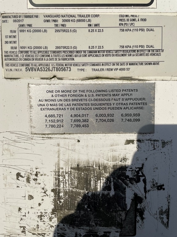 2018 Other 53' Dry Van Semi Trailer # EGL 31095 10R NC