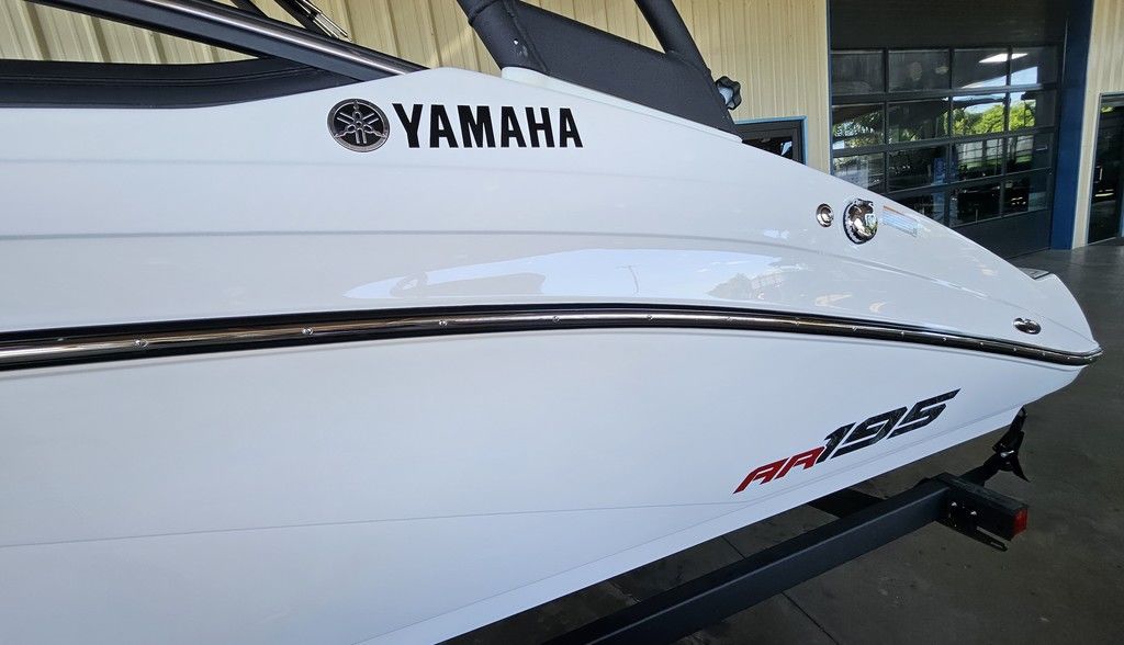 HUGE SAVINGS ON THIS NEW 2025 AR195 MODEL - Call Now! Yamaha boats come standard with everything you need for a great day on the water! We have a few White or Black models available. Comes With Trailer with swing away tongue for garage storage and anti-theft, Aluminum Folding wakeboard tower With bimini top, windshield mirror, Bow filler inserts for multiple seating options, dinette table with cockpit mount, removable cooler, boarding ladder, 5" connext touchscreen display, Marine stereo with bluetooth, cruise assist / no wake mode, USB charge ports, factory installed swim up seat brackets (swim up seats sold separately) 12 Volt Outlet Yamaha 19 foot boats are engineered with a huge interior design that has plenty of room for 8 passengers and well planned out storage and layout. Easy access clean out port, easy Engine access, removable cushion for rear step thru entry, snap out easy to clean flooring, and so much more! 250 HP with the single supercharged 4-cylinder 4 stroke super vortex high output Yamaha engine. Enjoy unparalleled supercharged performance, standout styling, and incredible value, all enhanced by a watersports tower.