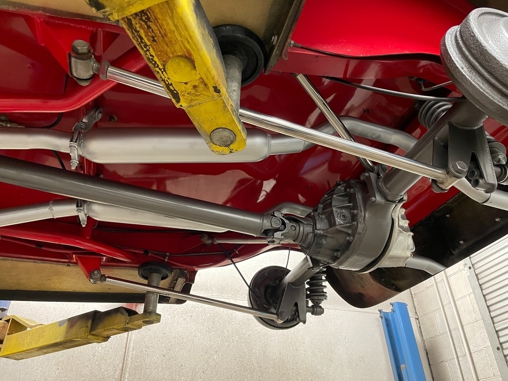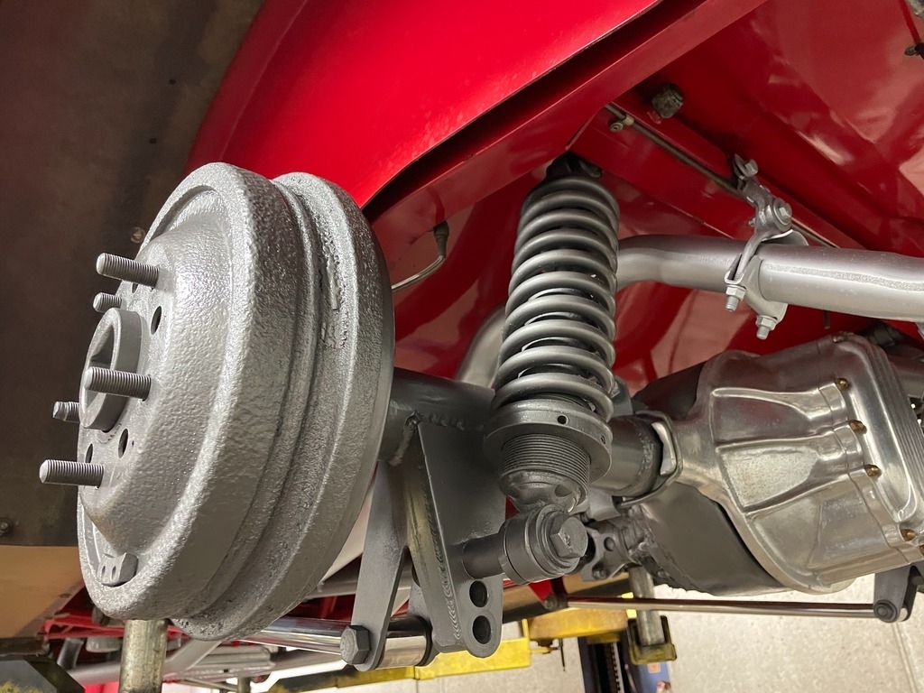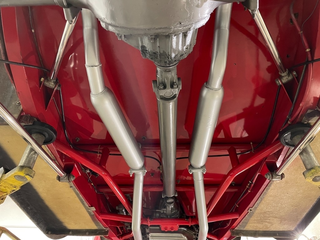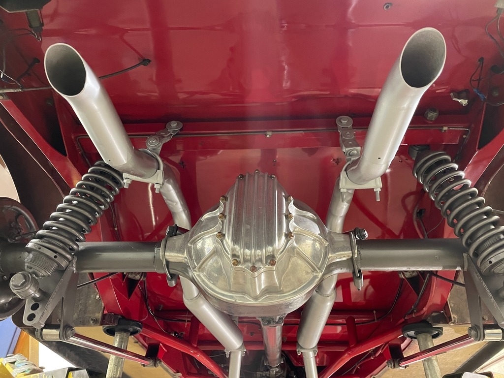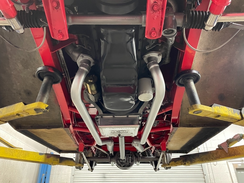 This car is chopped and channeled and built Downs Manufacturing. It has a 350ci engine with aluminum heads, TH400 auto transmission, 9 inch Ford rear with four link and coil overs. IRS front suspension, power windows, door poppers and suicide doors, Weld wheels and new carb, radiator and alternator.