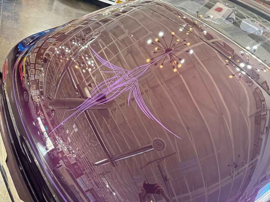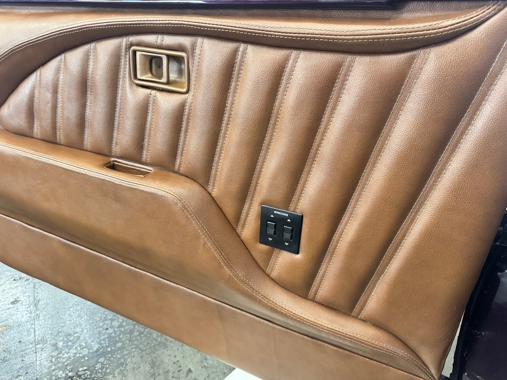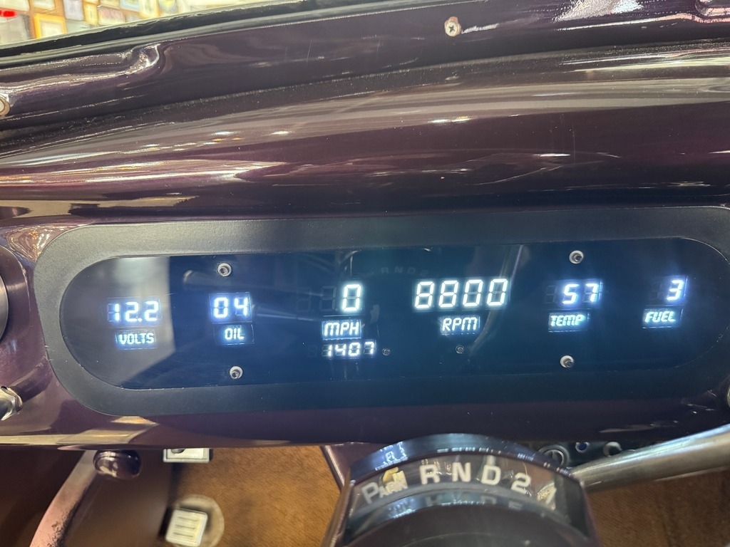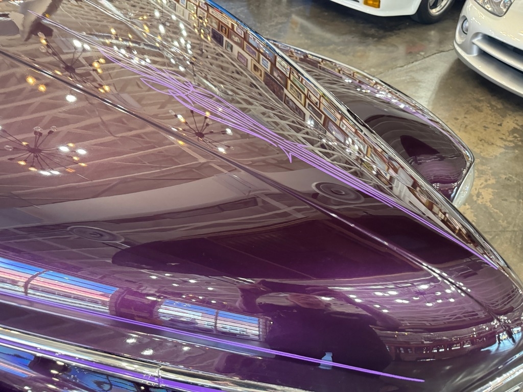 This Custom Build has a chopped top, shaved door handles, digital gages and tinted windows. Lowered and equipped with A/C, power windows, power front seat, map lights, tilt steering and 15” polished aluminum wheels. Purple metallic exterior with all new leather interior with twin power front seats.