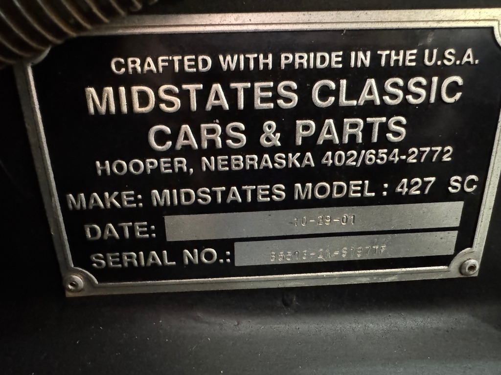 The kit was supplied by Midstates Classic Cars of Hooper, Nebraska, wiring by Haywire Inc, and transmission by TCI - C6 Street Fighter. Only the finest parts were used in building this race/streetcar. Also includes a hardtop and side curtains. Well over $100K to build not including labor. Beautiful car!