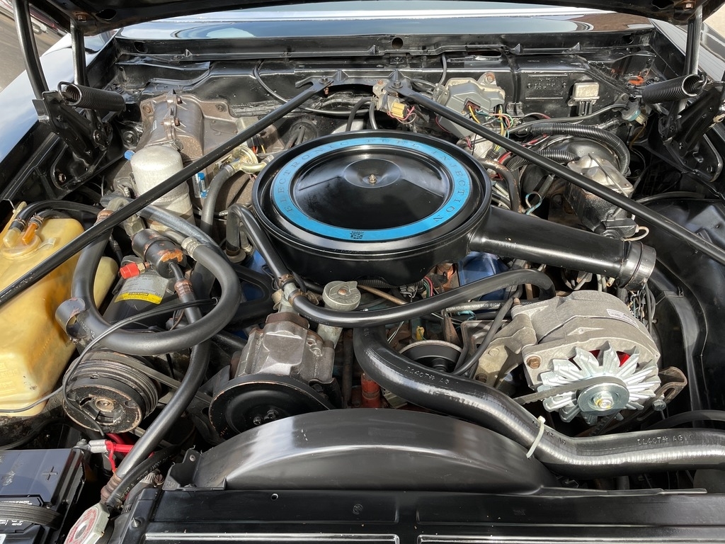 Updates include: Fully rebuilt engine with a 12 month, 12,000 mile warranty; New Turbo 700R 4 transmission also with 12/12 warranty. These upgrades allow this Cadillac San Remo to get modern car fuel economy by using the overdrive transmission compared to the old Turbo 400 3 speed.