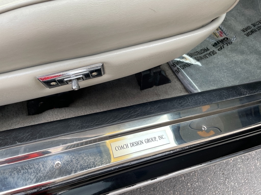 This 1977 Cadillac Seville San Remo Coupe is one of those examples built by Coach Design Group and was converted into a coupe from the standard four-door Seville sedan and features a rear half vinyl roof with chrome wrap over molding and electric sunroof by American Sunroof Corporation, opera lamps, and a modified fixed quarter window in place of the rear doors along with a modified rear fascia with Eldorado taillights grafted in.