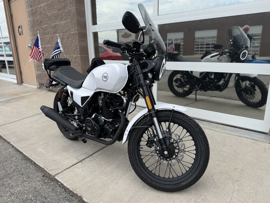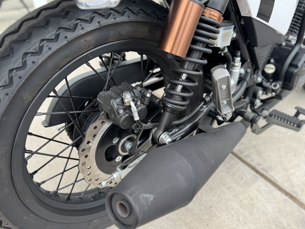 Powered by a 249cc air-cooled single-cylinder engine paired with a 5-speed transmission, the SG250 delivers a spirited ride that’s lightweight, responsive, and pure fun. Its retro styling with clip-on handlebars, minimalist tank, cafe seat, and classic round headlight, captures the soul of 1960s motorcycling while offering todays dependability and efficiency.