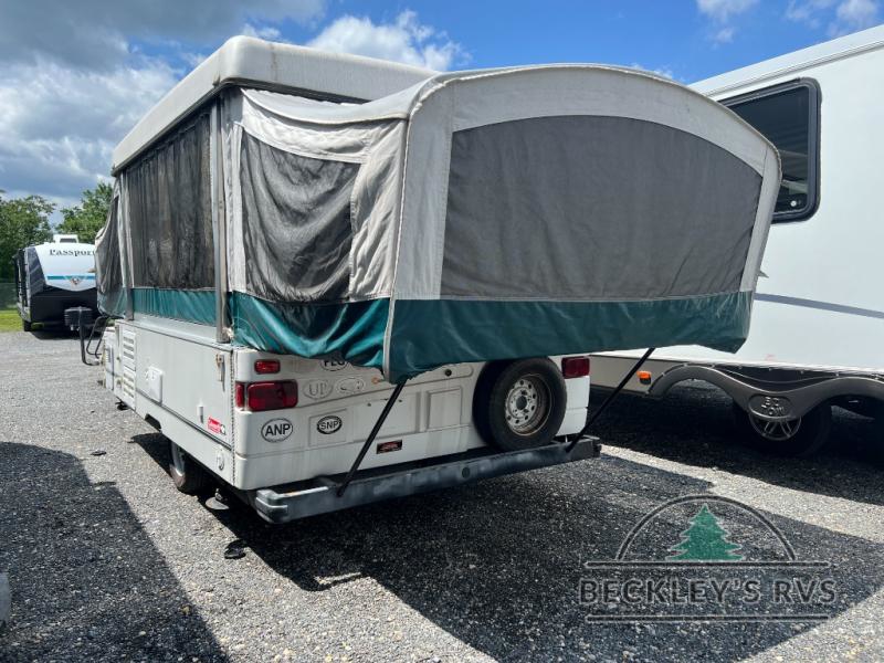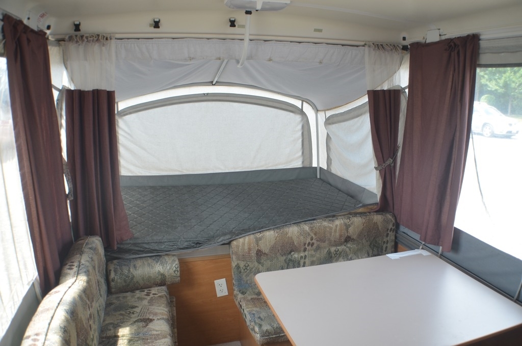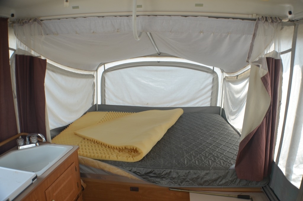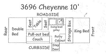This is a basic sleeps 4 camper with a roof 2 beds and 2 wheels.