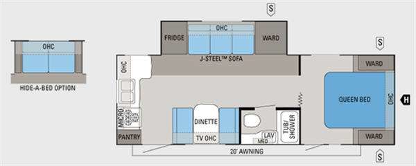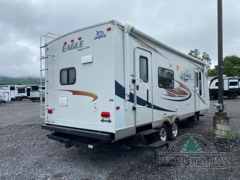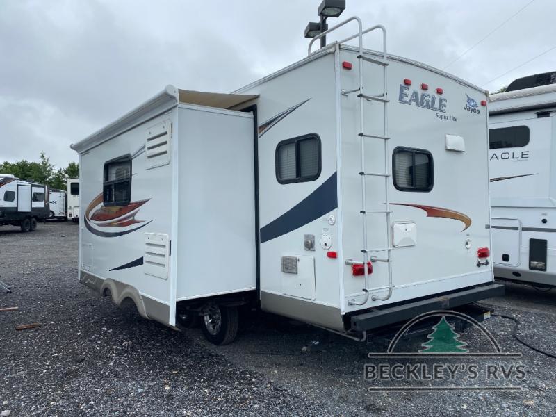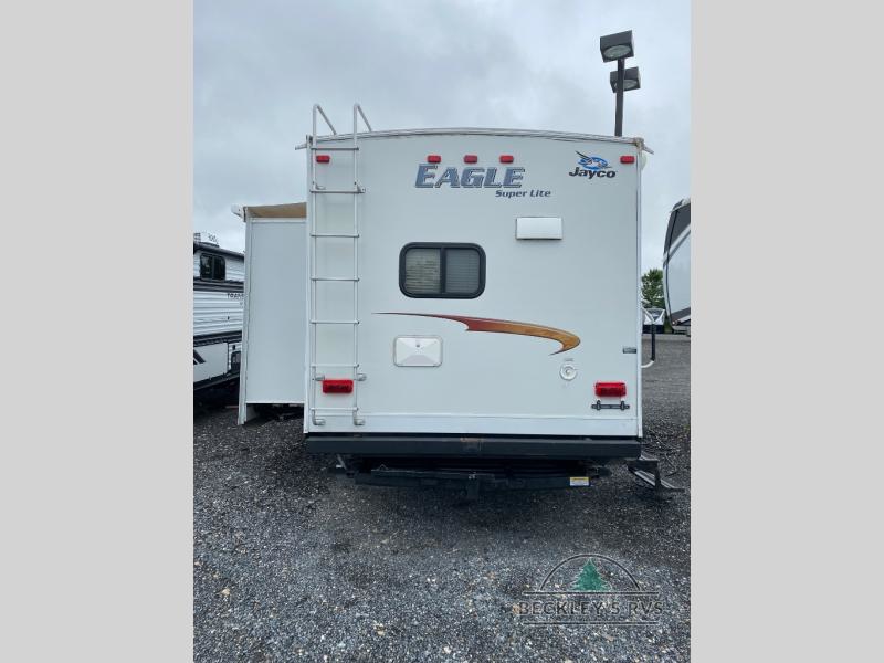 Single Slide Eagle Super Lite Travel Trailer by Jayco, Rear Kitchen w/Pantry, 3 Burner Range w/Micro., Dbl. Kit. Sink, Refrig./J-Steel Sofa/Wardrobe Slideout, Booth Dinette, TV Overhead Cabinet, Toilet, Lav. w/Med. Cab., Tub/Shower, Front Queen Bed w/Dbl. Wardrobes, Overhead Cabinets Throughout, 20' Awning & Much More. Available Options May Include: Hide-A-Bed.