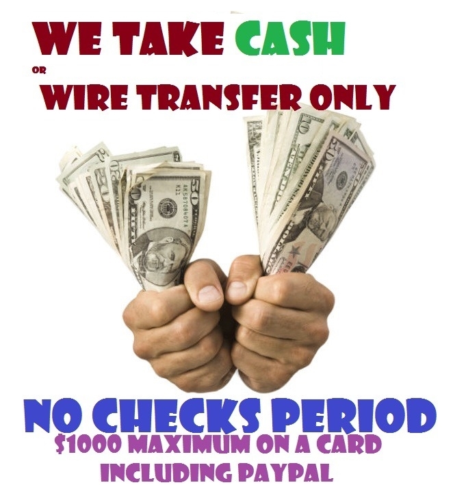 WIRE TRANSFER ONLY! No exceptions. We take a maximum of